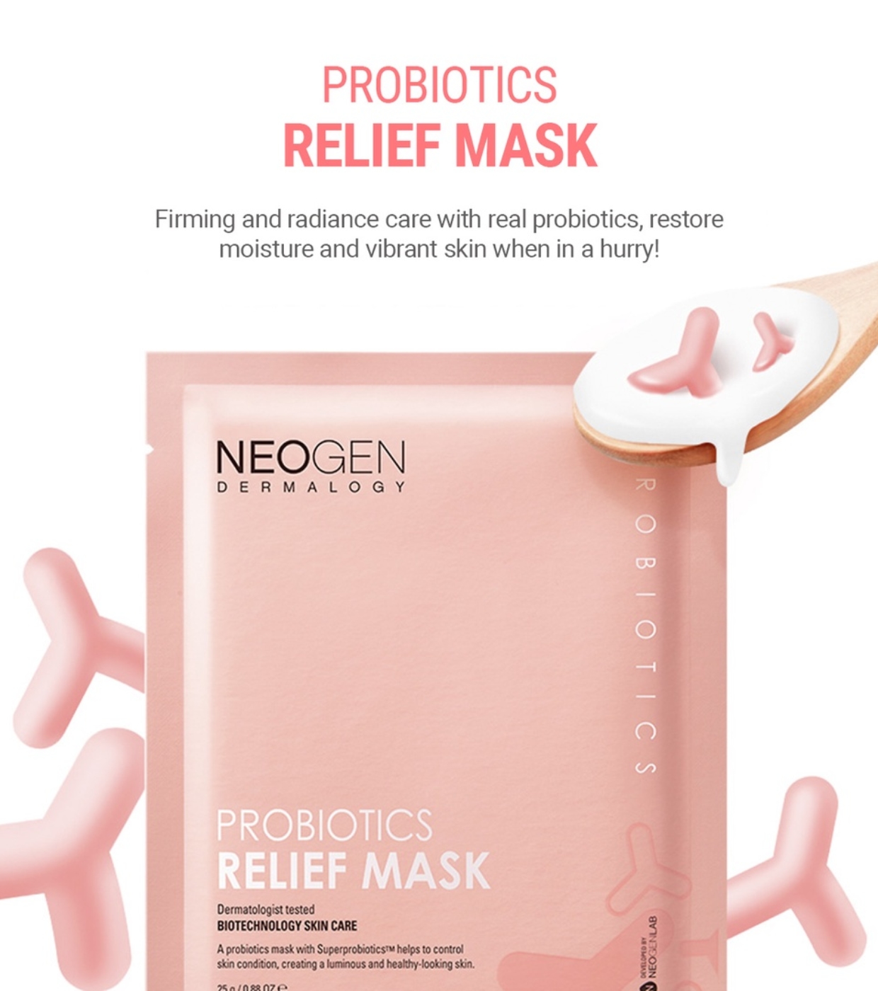 A Dermalogy Probiotics Relief Mask da Neogen é uma máscara facial calmante e intensiva, especialmente desenvolvida para peles secas, sensíveis ou com a barreira cutânea fragilizada.