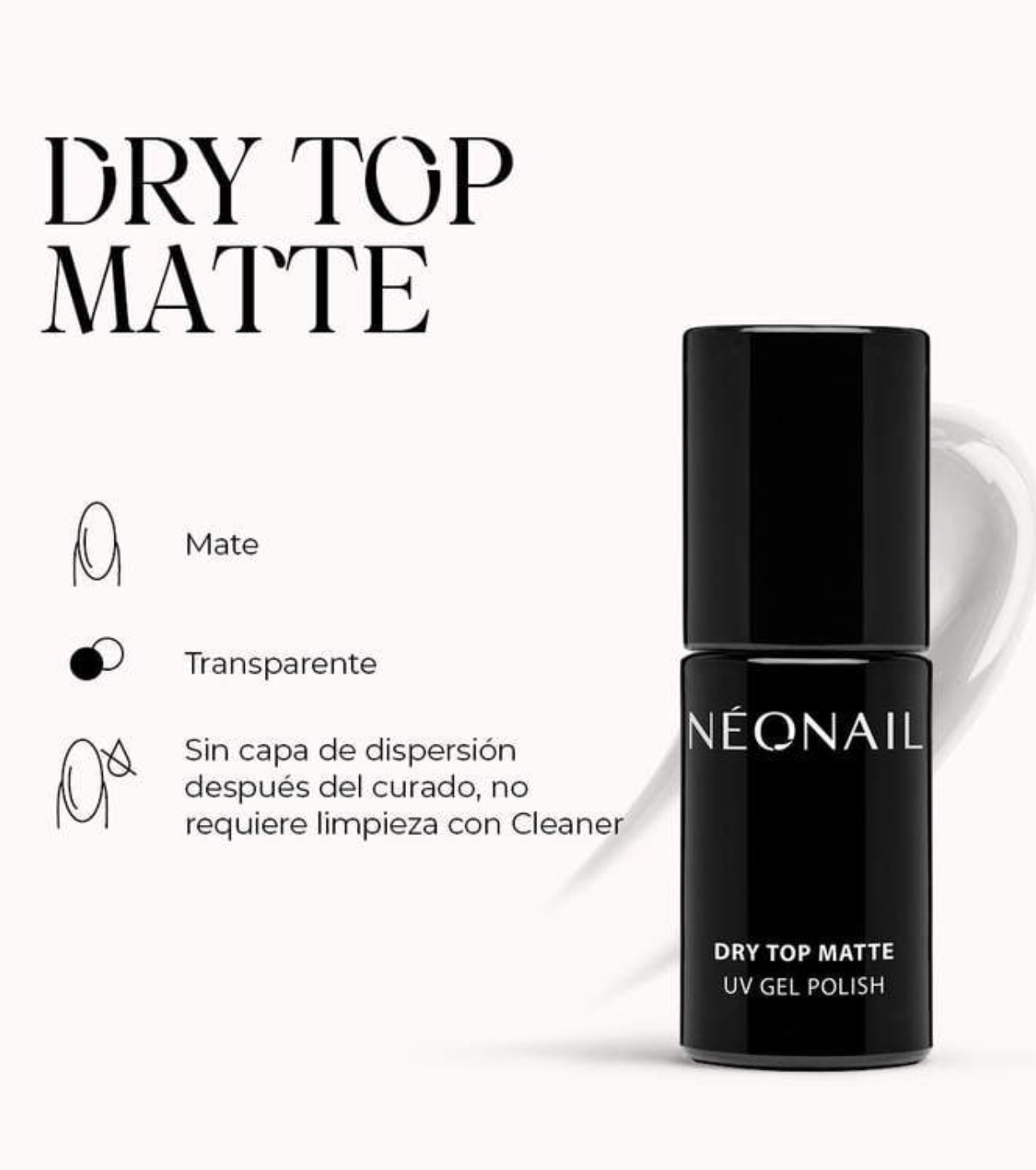Dry Top Matte da Neonail é um esmalte semipermanente com acabamento fosco que não requer a aplicação de Cleaner após o uso.