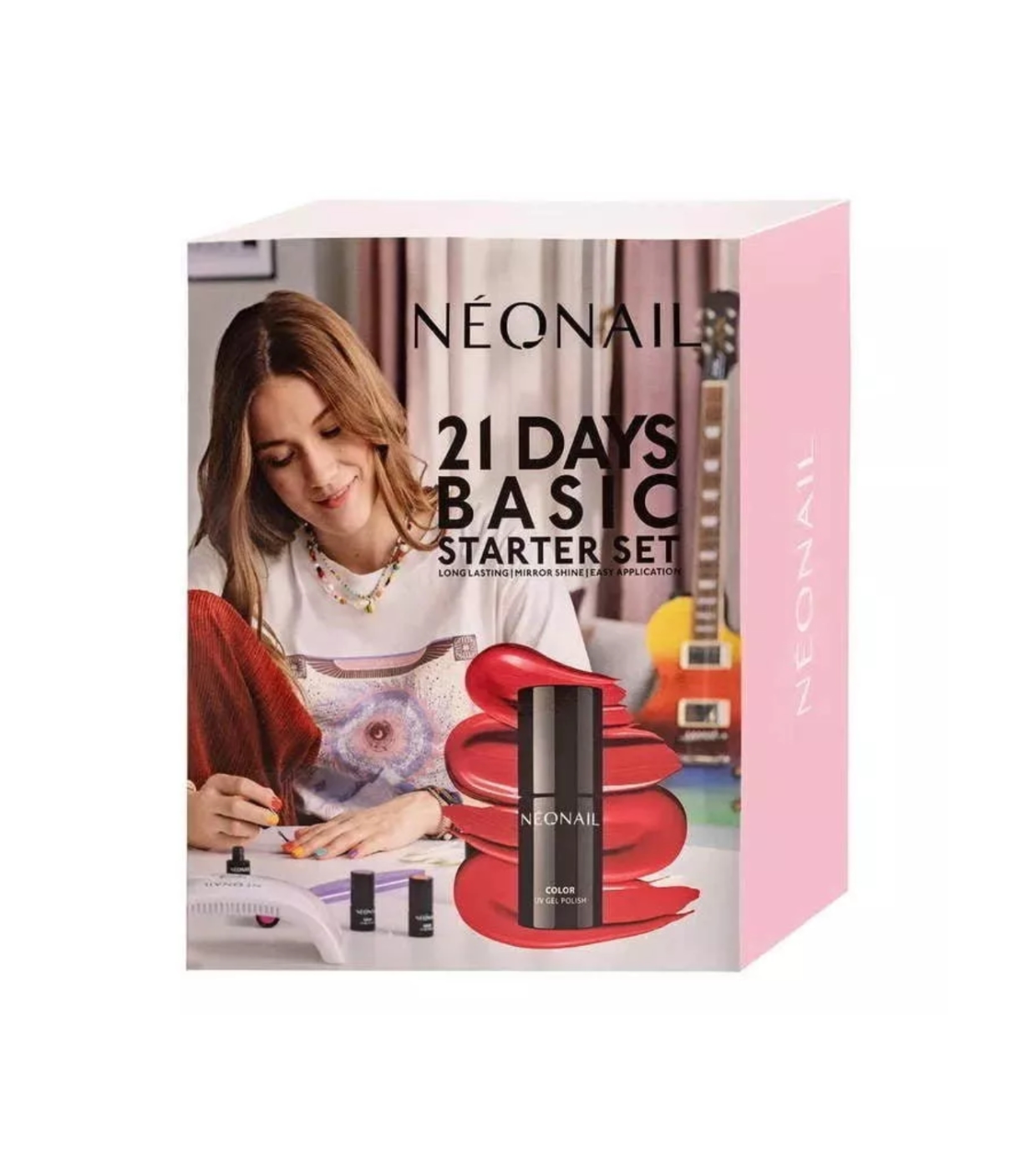O Starter Set 21 Days Basic com 1 esmalte NÉONAIL é a maneira mais fácil e prática de começar a usar esmaltes semipermanentes em casa.