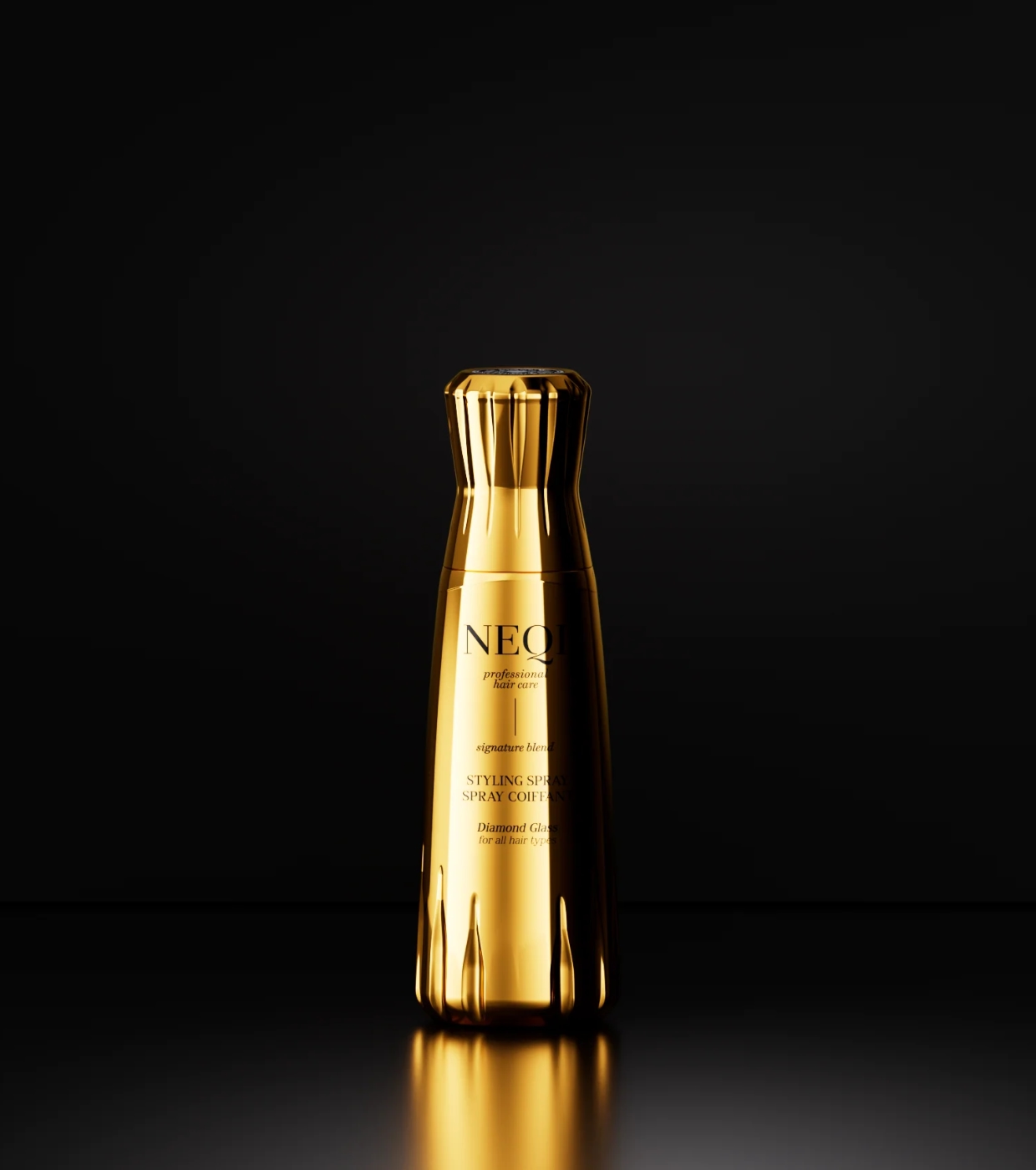 Obtenha o efeito “cabelo de cristal” com Diamond Glass Styling Spray Diamond Glass Styling Spray , um spray profissional que protege contra a umidade, proporciona brilho espelhado e mantém seu penteado sob controle.neqi-hair.com.