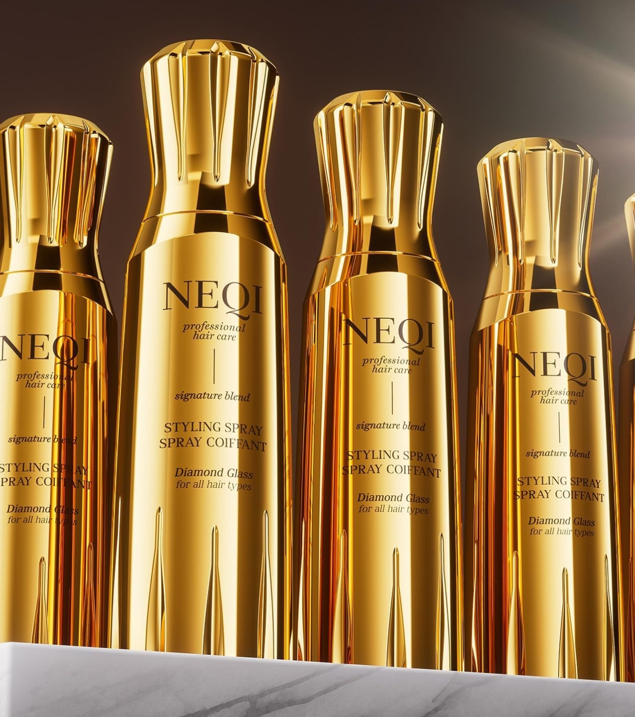 Obtenha o efeito “cabelo de cristal” com Diamond Glass Styling Spray Diamond Glass Styling Spray , um spray profissional que protege contra a umidade, proporciona brilho espelhado e mantém seu penteado sob controle.neqi-hair.com.