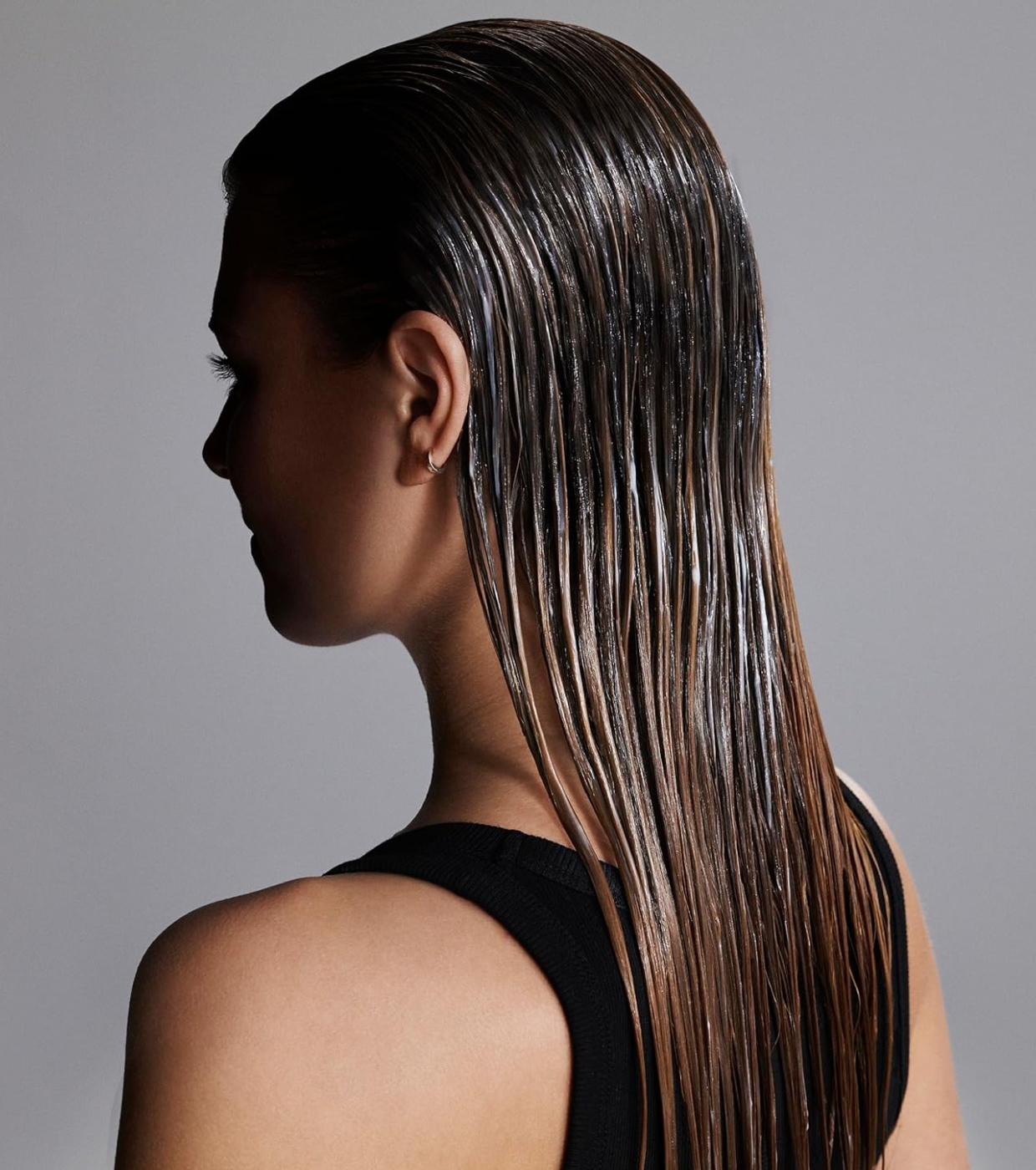 1. Massageie o condicionador no comprimento do cabelo após a lavagem.