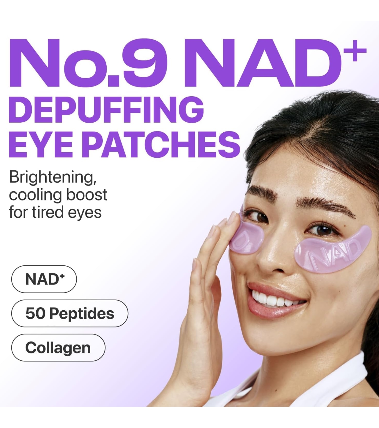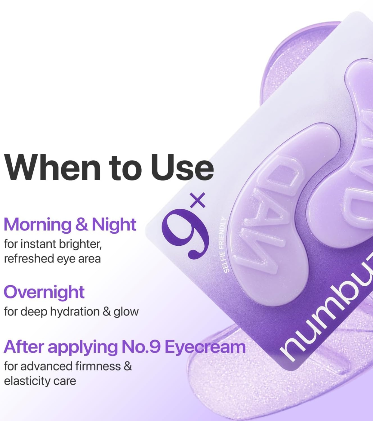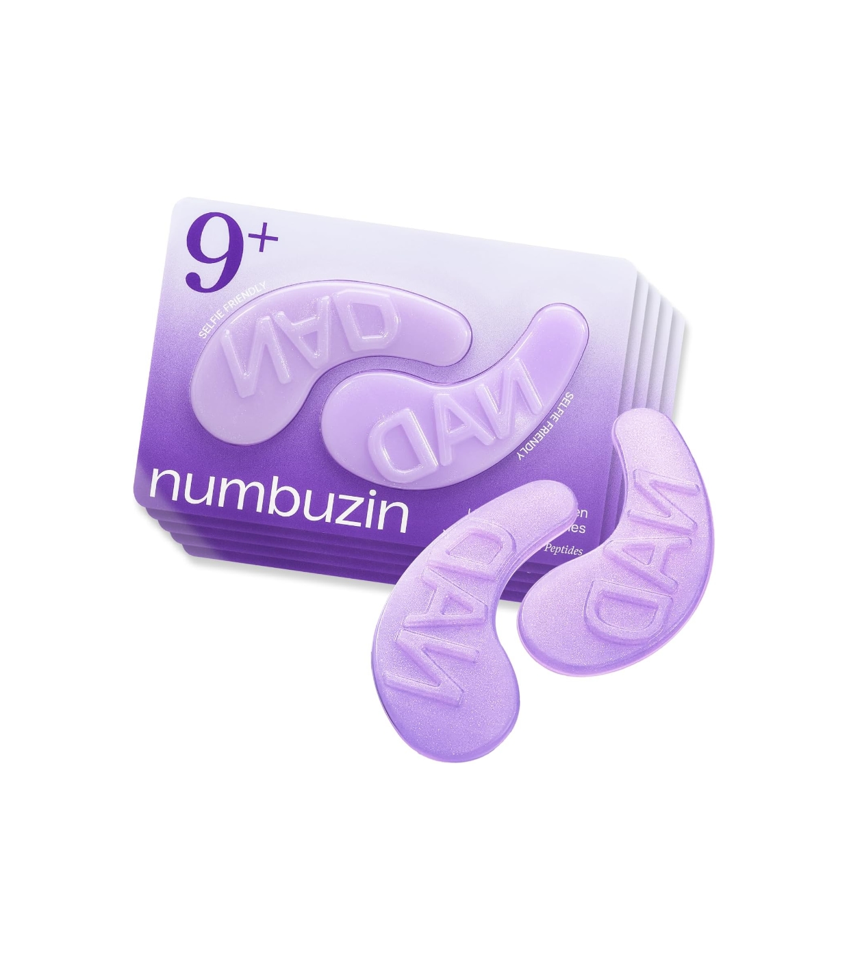 Restaure a energia, a firmeza e o brilho do contorno dos olhos com os adesivos de colágeno para a área dos olhos NAD+ No. 9 Under Eye Collagen Patches da Numbuzin , adesivos de hidrogel antienvelhecimento altamente eficazes, desenvolvidos para tratar intensivamente os sinais de fadiga e envelhecimento na delicada área dos olhos.