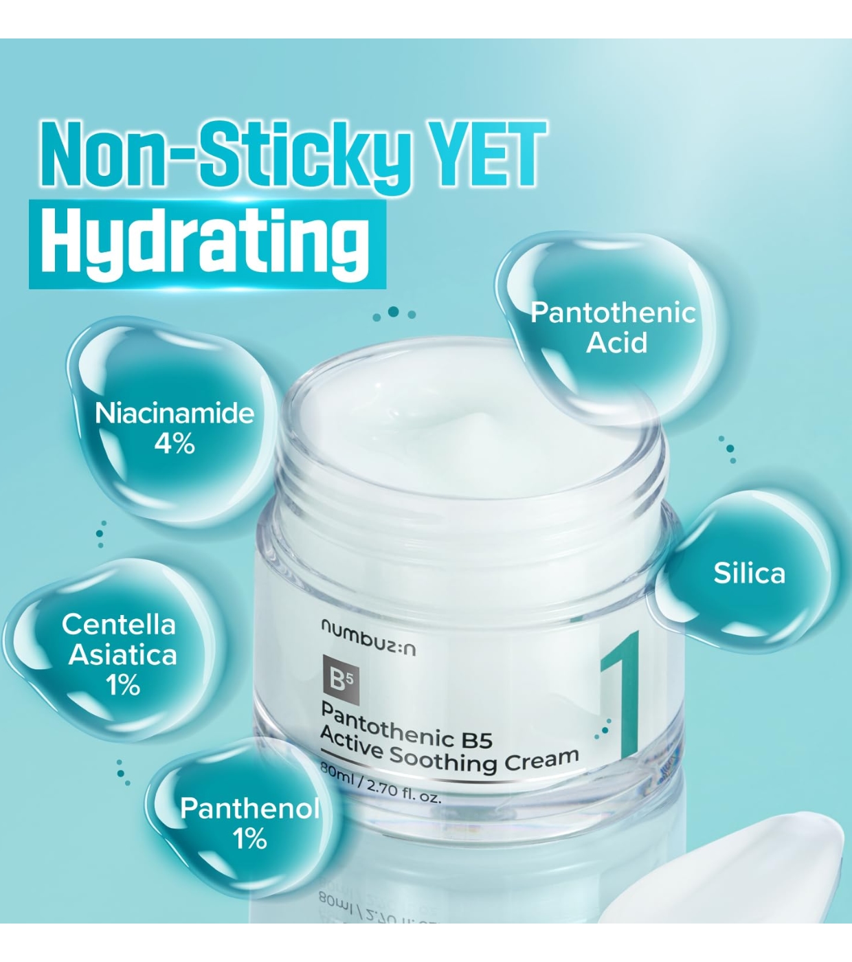 Acalme e equilibre a sua pele com este creme suavizante da Numbuzin , formulado com extratos de centella asiática e folhas de chá verde, conhecidos pelas suas propriedades calmantes e antioxidantes.