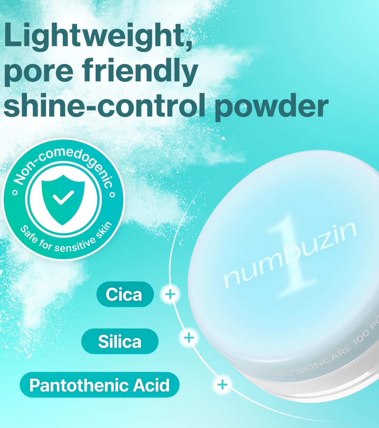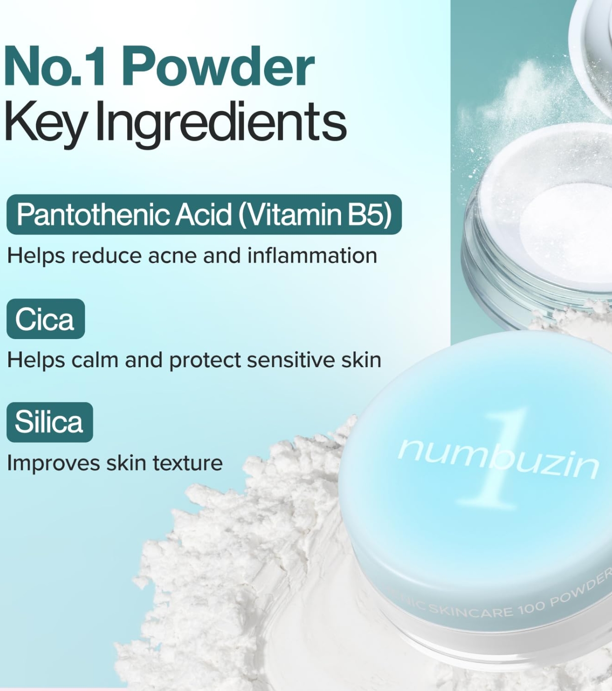 Consiga uma pele lisa, sem brilho e bem cuidada com o pó matificante No.1 Pantothenic Skincare 100 da Numbuzin, um pó matificante que não só aperfeiçoa o acabamento da sua maquilhagem, como também trata a sua pele.