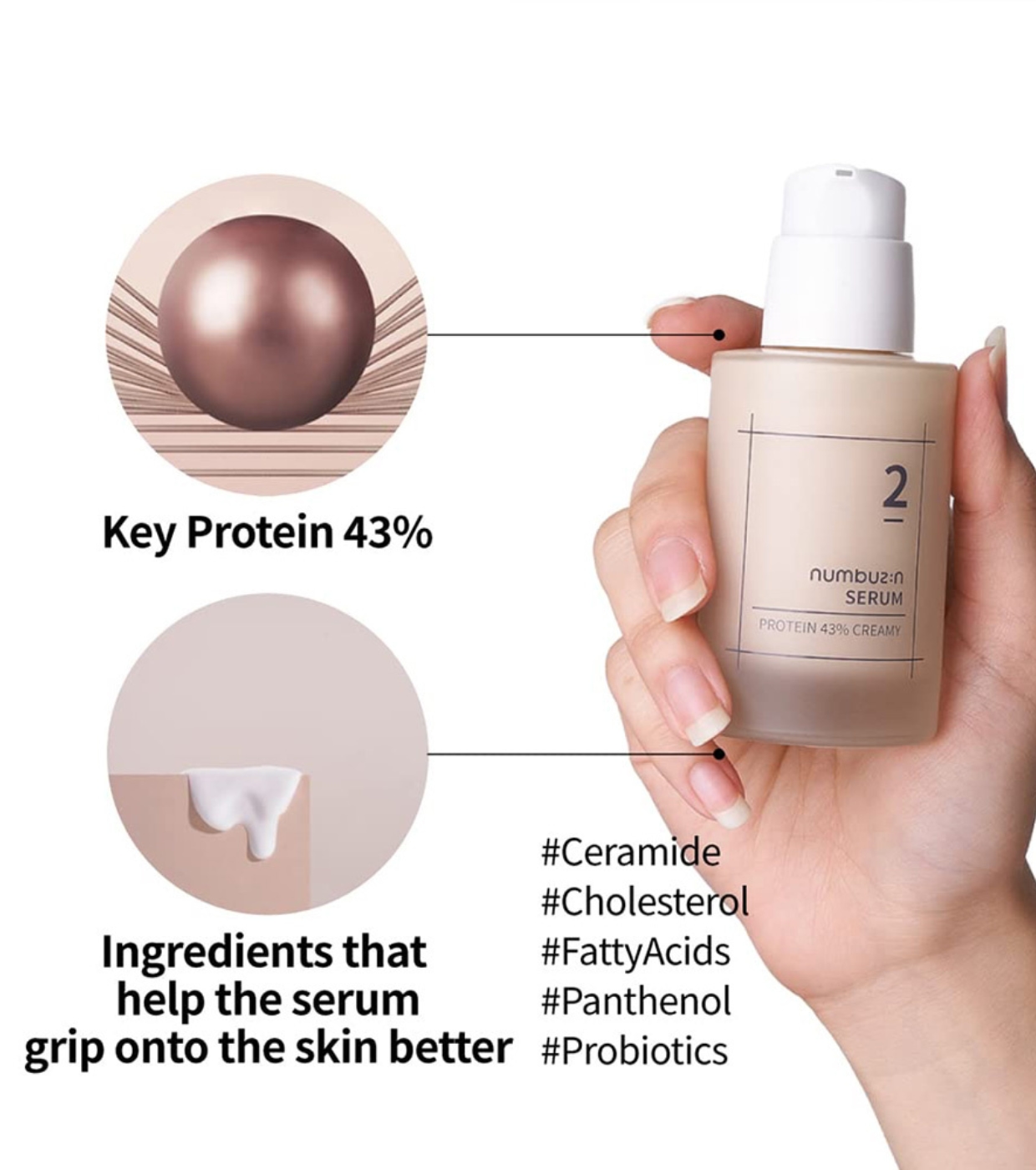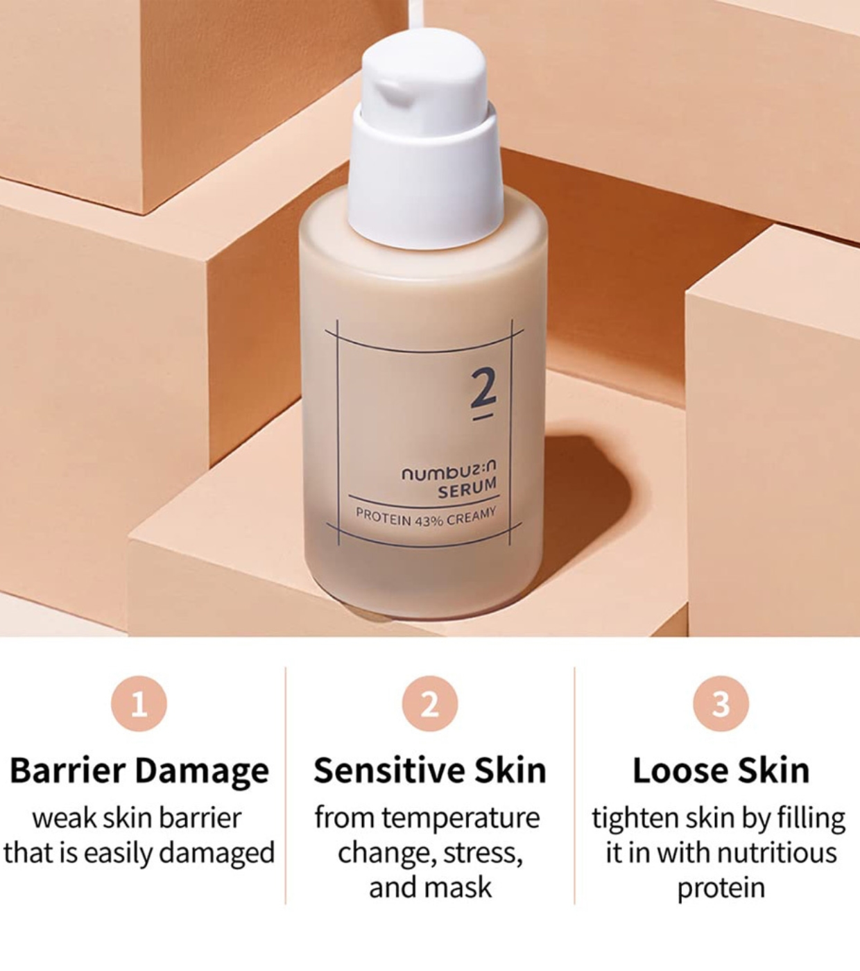 Nutra e hidrate profundamente sua pele com este sérum cremoso No.2 Protein 43% da Numbuzin , formulado com 43% de ingredientes ricos em proteínas para restaurar o equilíbrio natural e a saúde do seu rosto.