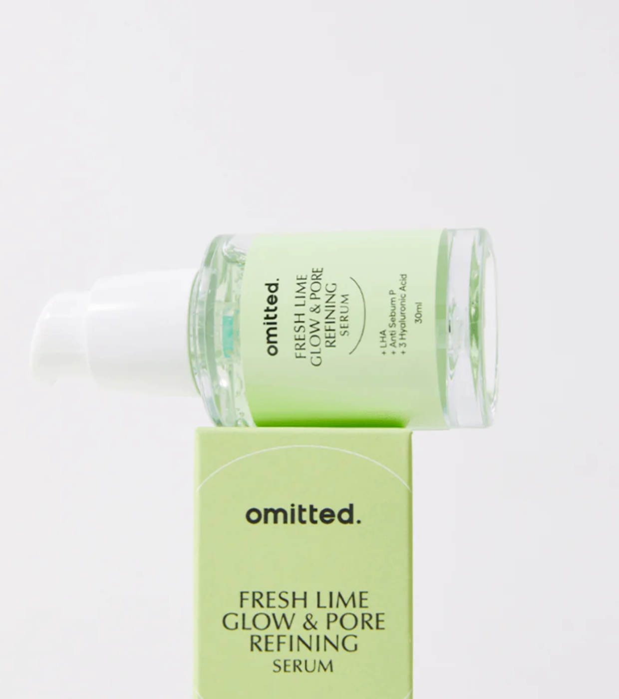 O Fresh Lime Glow & Pore Refining Serum da Omitted é um sérum facial avançado que clareia a pele, melhora a textura da pele e reduz a aparência de poros dilatados, sem comprometer a hidratação.