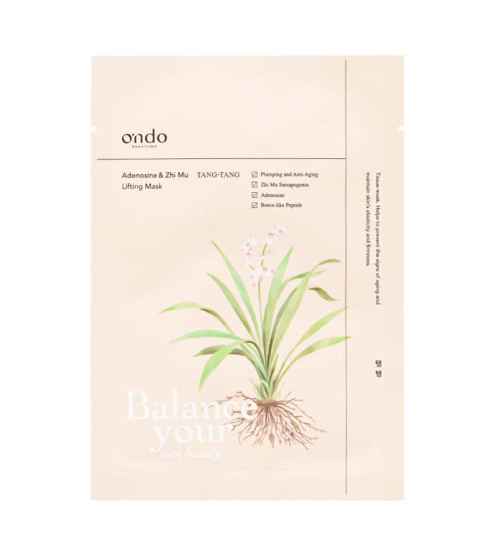 Esta máscara Lifting Adenosine & Zhi Mu da Ondo Beauty 36.5 foi desenvolvida para manter a elasticidade e firmeza da pele, ajudando a prevenir sinais de envelhecimento.