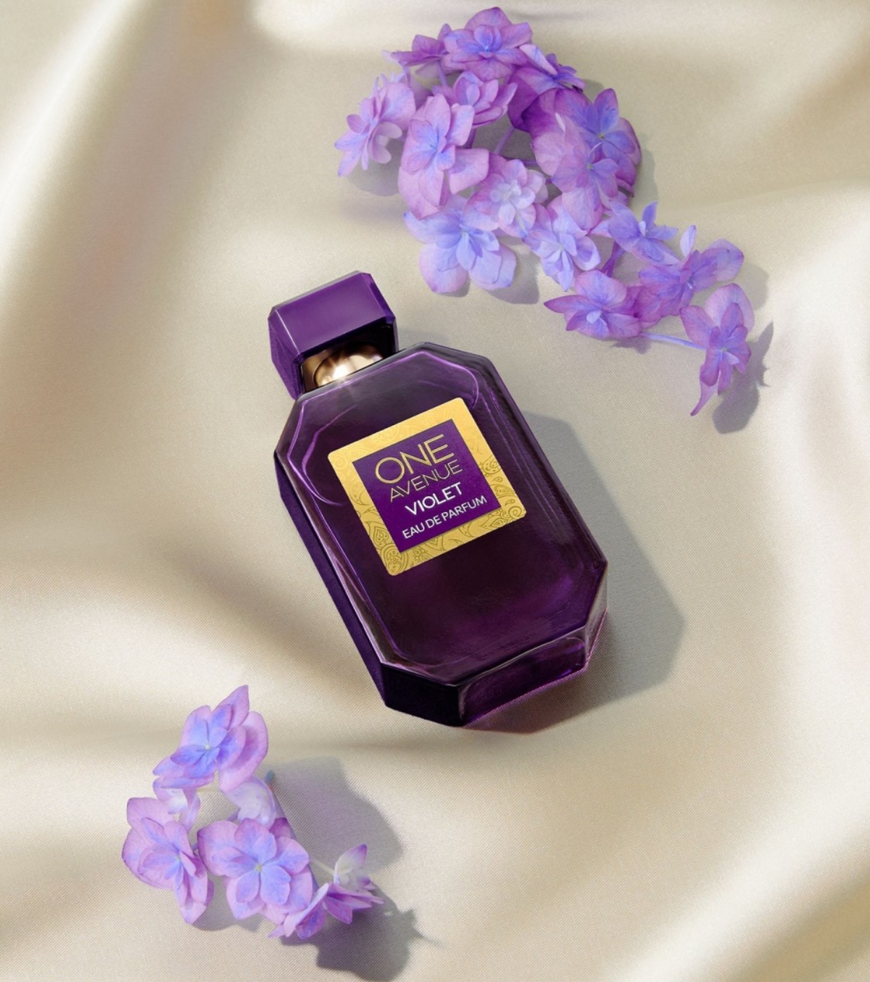 Violet da ONE AVENUE é uma fragrância amadeirada e âmbar criada para mulheres confiantes, sensuais e com uma aura misteriosa.