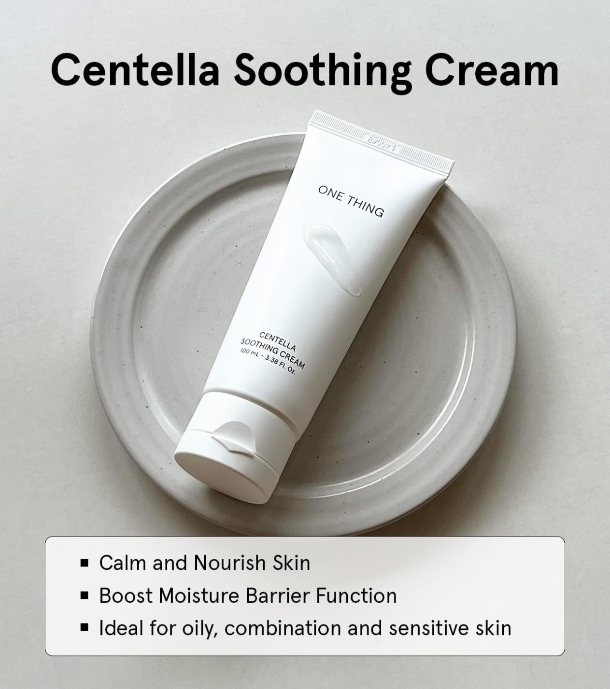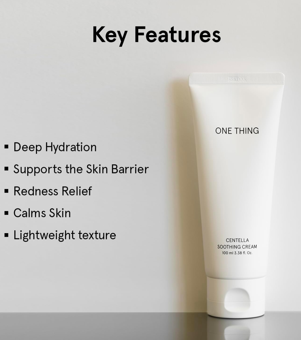 O Creme Calmante de Centella da One Thing é um hidratante leve desenvolvido para aliviar irritações causadas por fatores externos e proporcionar conforto imediato à pele.