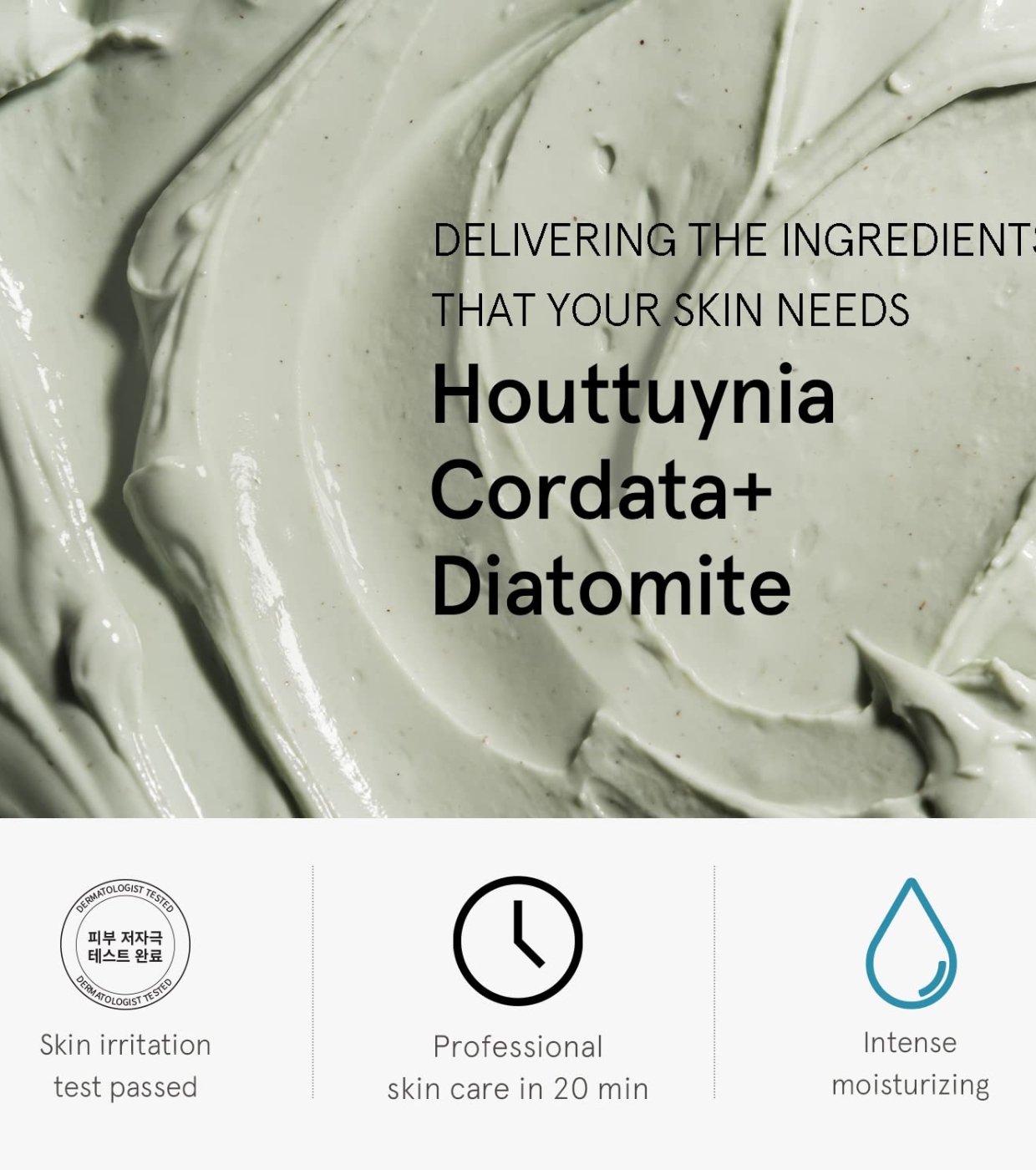 Diatomaceous Earth, Algin, Glucose, Calcium Sulfate, Tetrasodium Pyrophosphate, Magnesium Oxide, Sodium Benzoate, Spirulina Platensis Powder, Potassium Sorbate, Aqua, Houttuynia Cordata Powder, Allantoin, Glycerin, 1, 2-Hexanediol, Glycyrrhiza Glabra Root Extract, Houttuynia Cordata Extract