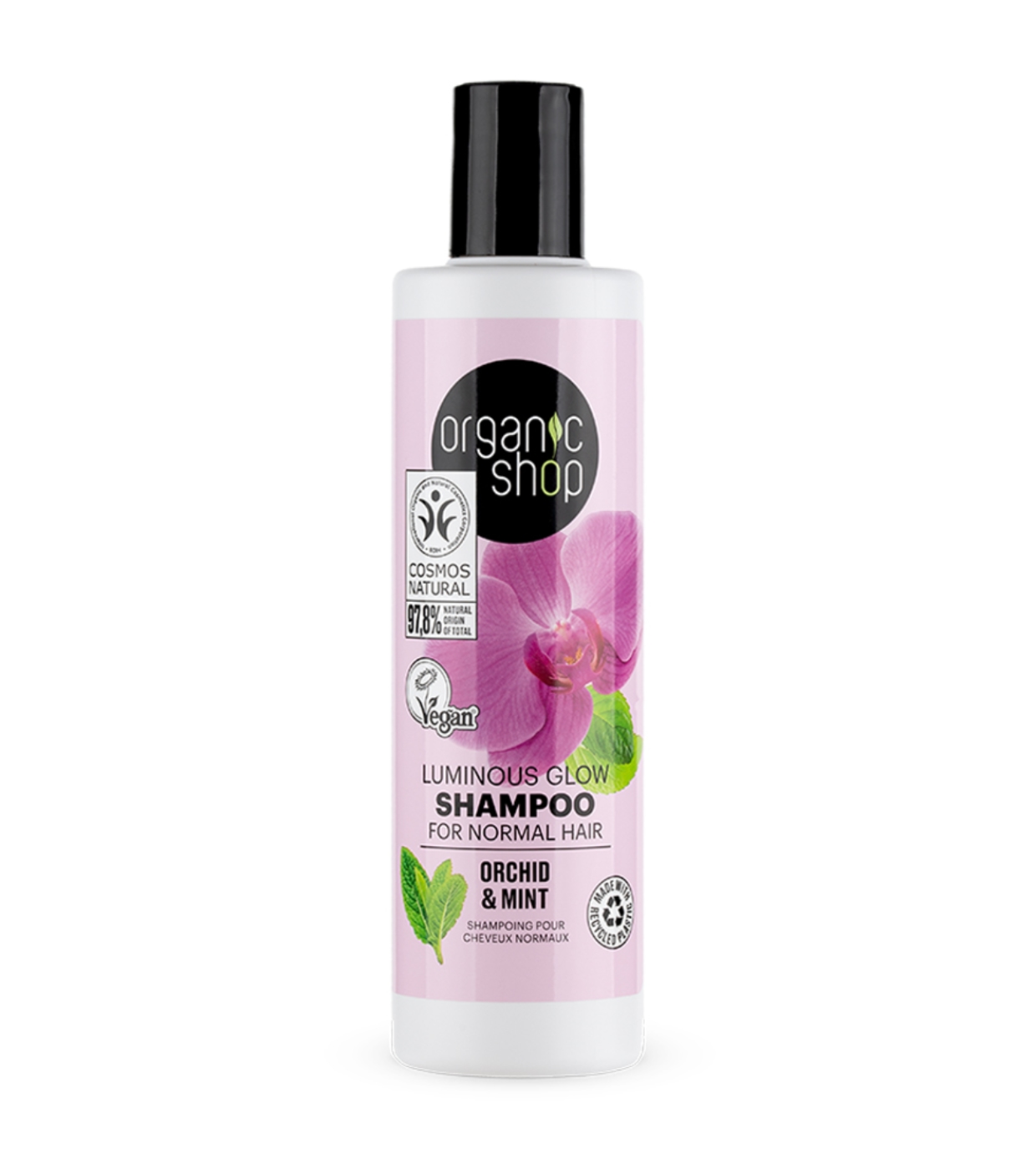 Redescubra a beleza natural do seu cabelo com o shampoo Luminous Glow da Organic Shop , uma fórmula exclusiva que combina a maciez da Orquídea e o frescor revitalizante da Menta.