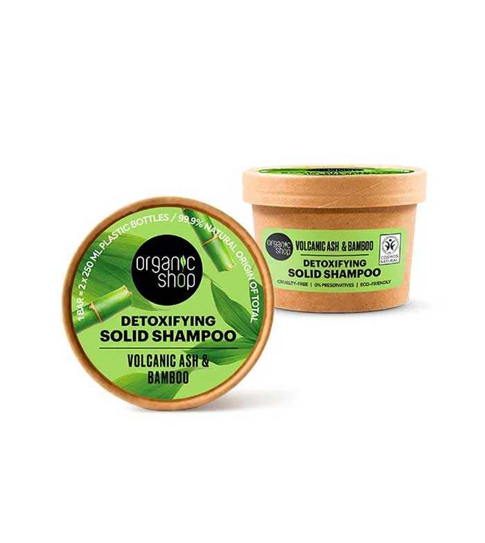 Shampoo sólido volumizador da Organic Shop com extrato de cinza vocánica e bambu.