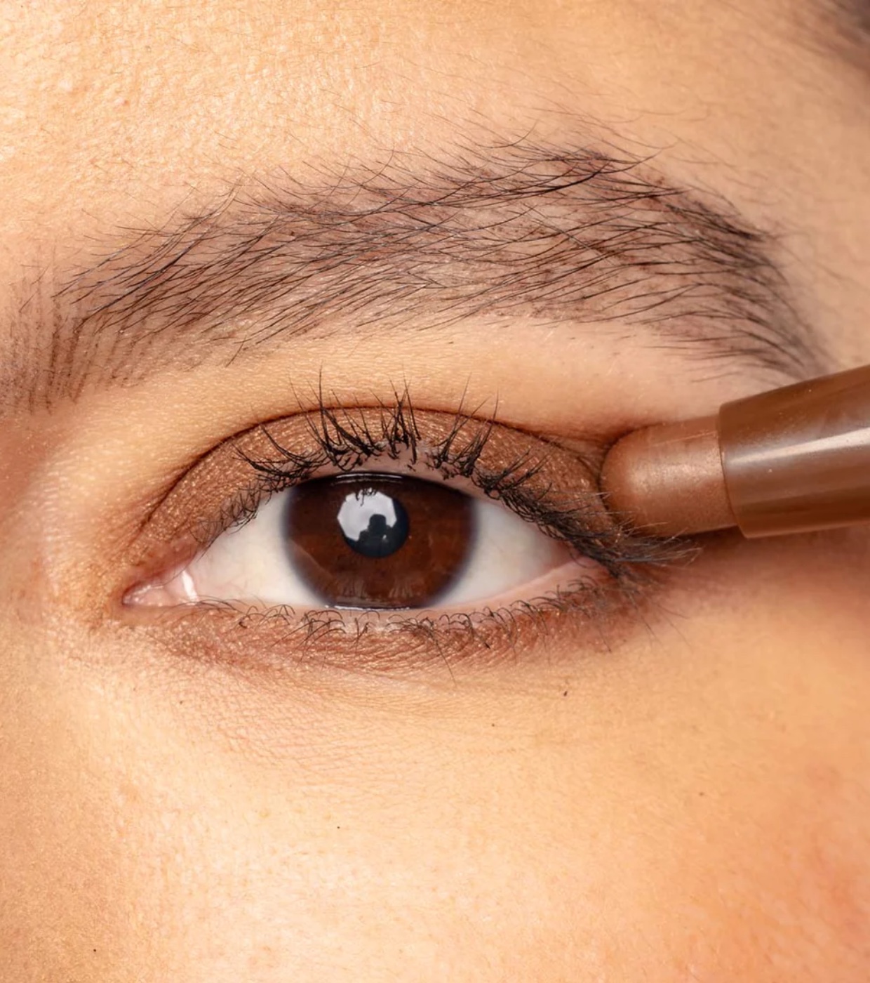 Esqueça os pincéis: basta deslizar a sombra em bastão sobre as pálpebras para uma aplicação construível, à prova de vincos e que permanece no lugar.