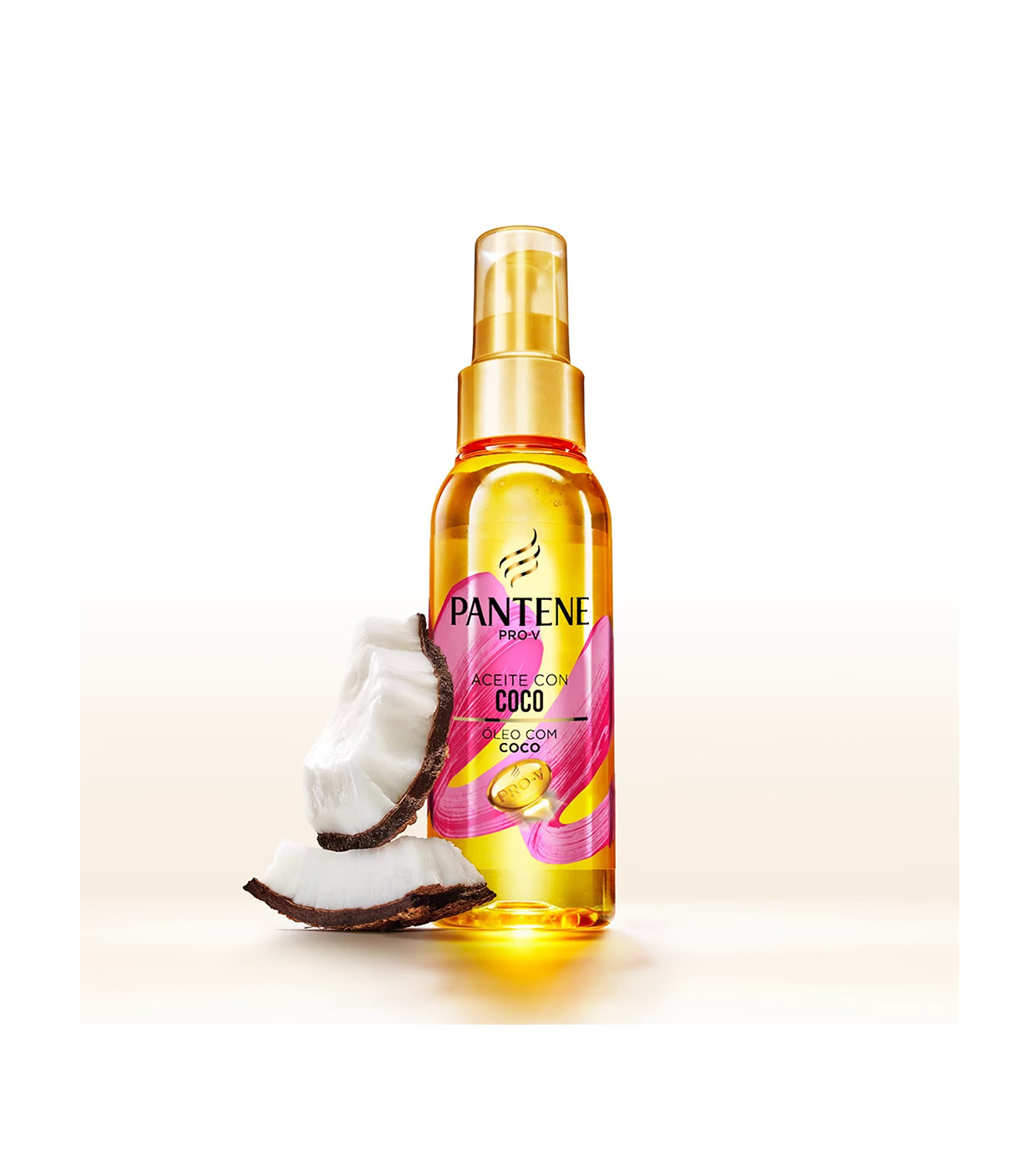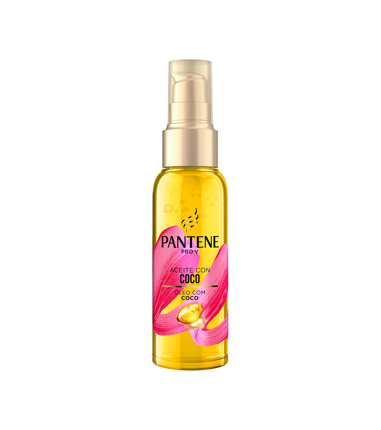 Óleo capilar de coco Pantene para cabelos macios e profundamente hidratados.