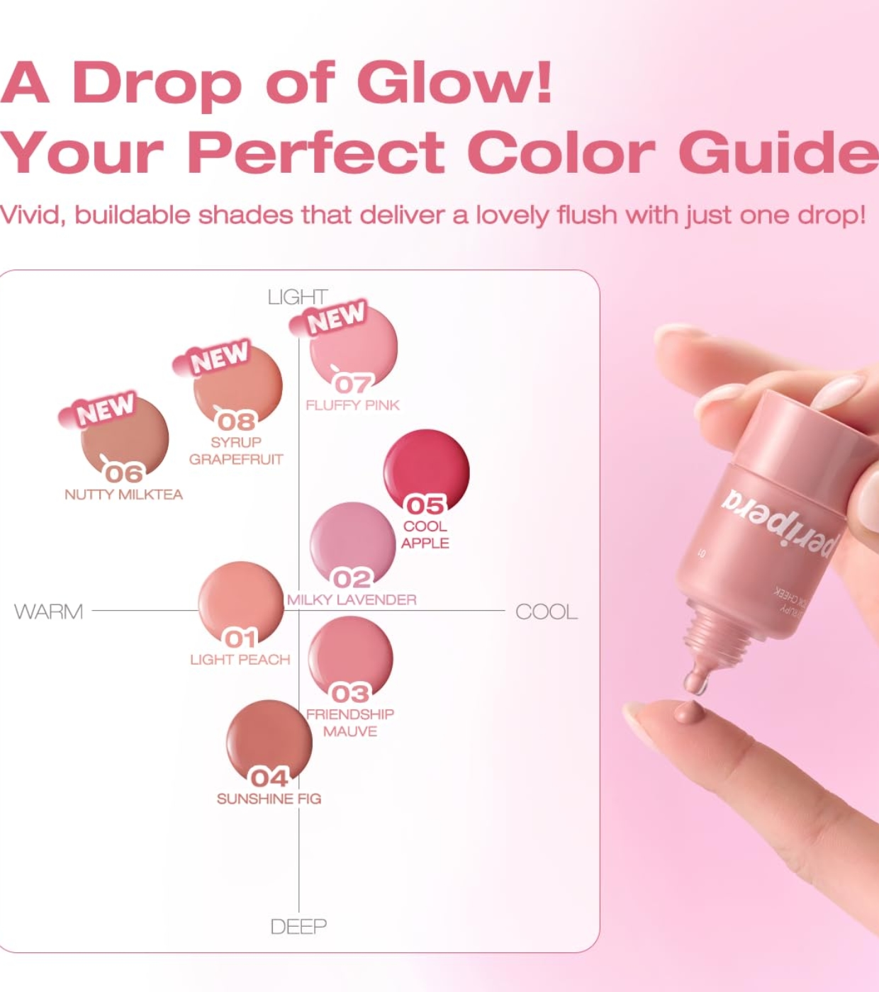 Deixe suas bochechas brilharem com este blush líquido Peripera Peripera que proporciona uma cor vibrante e um acabamento luminoso para uma aparência fresca e radiante.