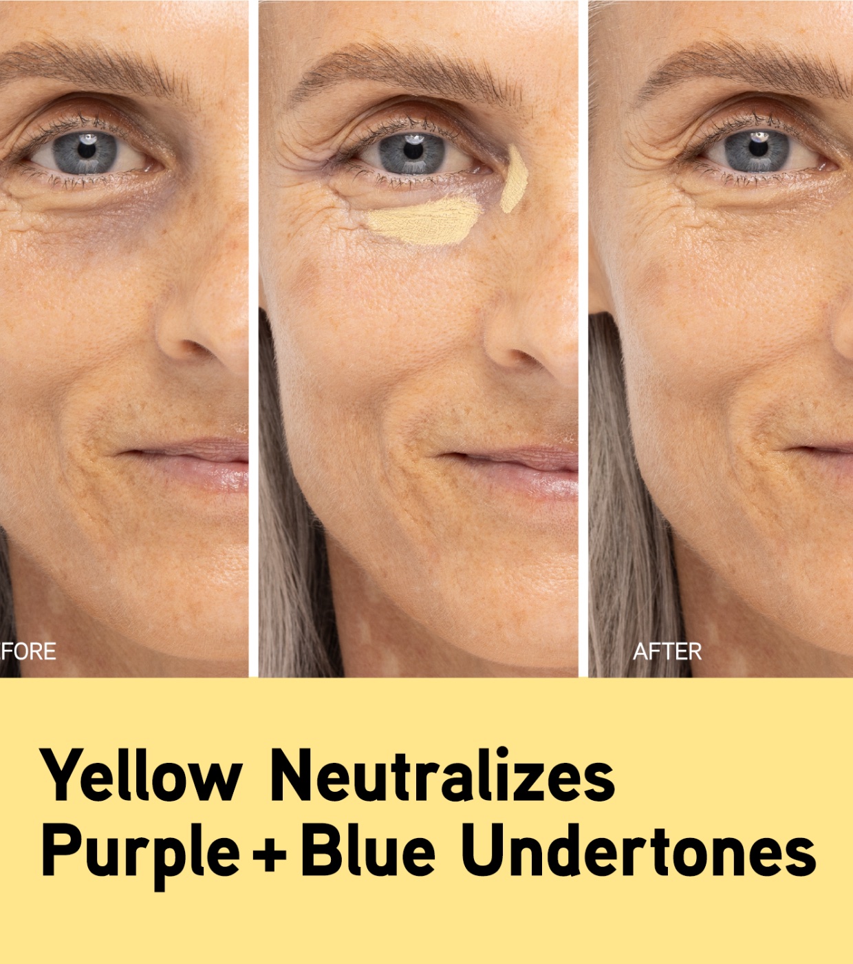 Este corretivo amarelo neutraliza a descoloração roxa escura ou azul, especialmente na área sob os olhos.