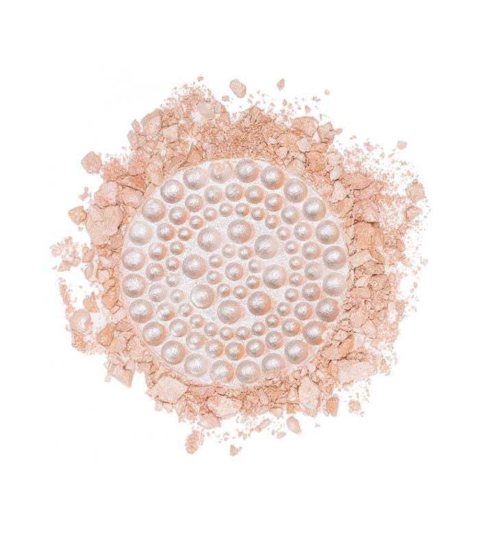 Pó pérola prensado multicolorido exclusivo que derrete e faz o rosto brilhar instantaneamente.