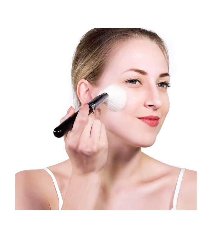 É um pincel muito versátil, então você também pode usá-lo para aplicar sutilmente o bronzer ou o iluminador em determinados pontos do rosto.