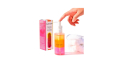 Nutrição e hidratação com uma fórmula poderosa que contém extrato de framboesa e hialuronato de sódio (bloco rosa).