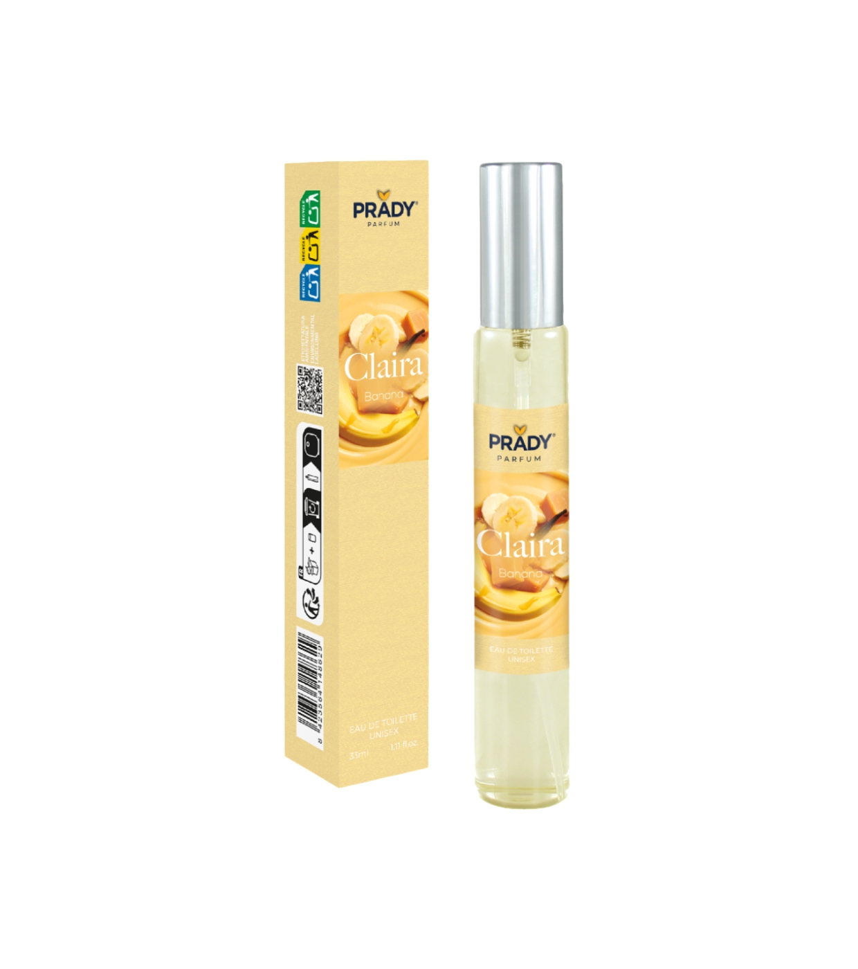 Descubra Claira Banana da Prady , uma fragrância deliciosa e divertida que te envolve com o aroma irresistível de um smoothie de banana com caramelo, chantilly e baunilha.