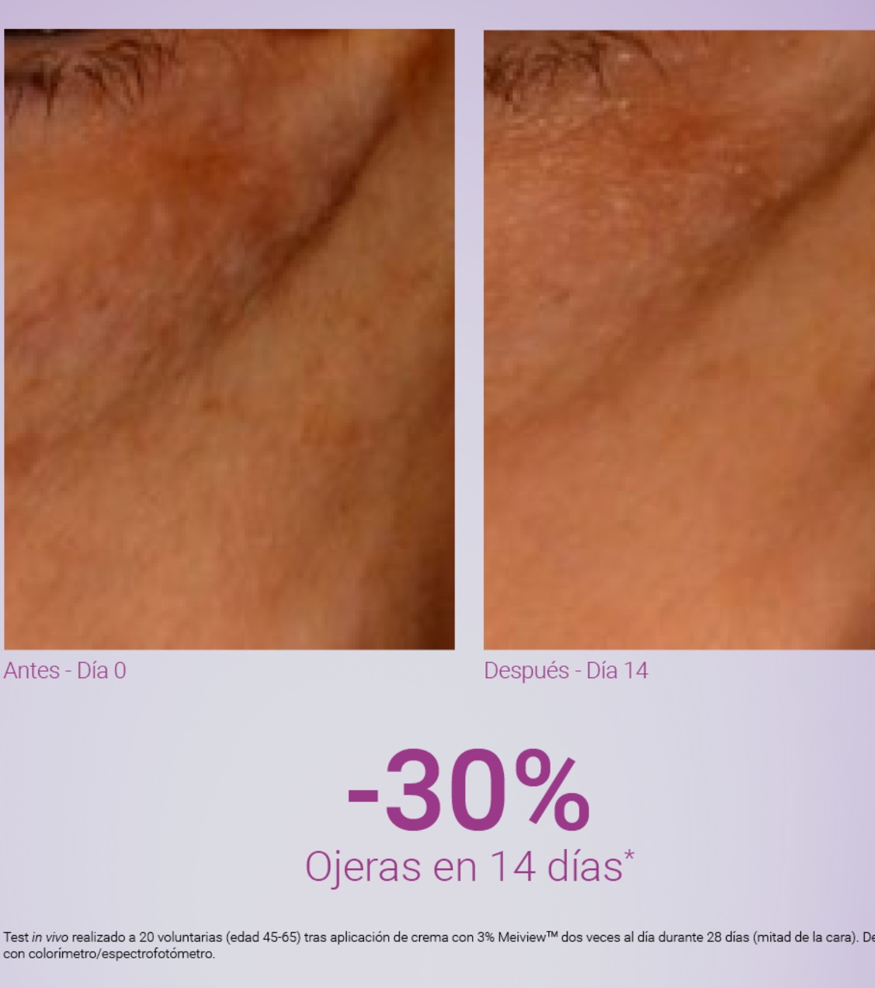 Meiview™ atua sinergicamente para minimizar o inchaço e as olheiras, restaurando a vitalidade dos olhos.