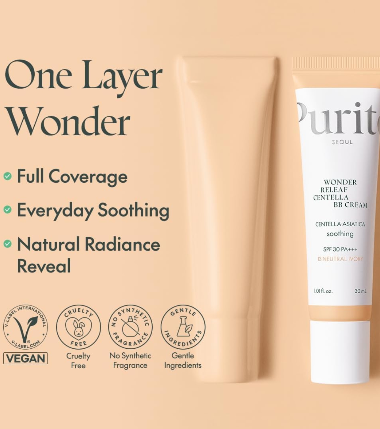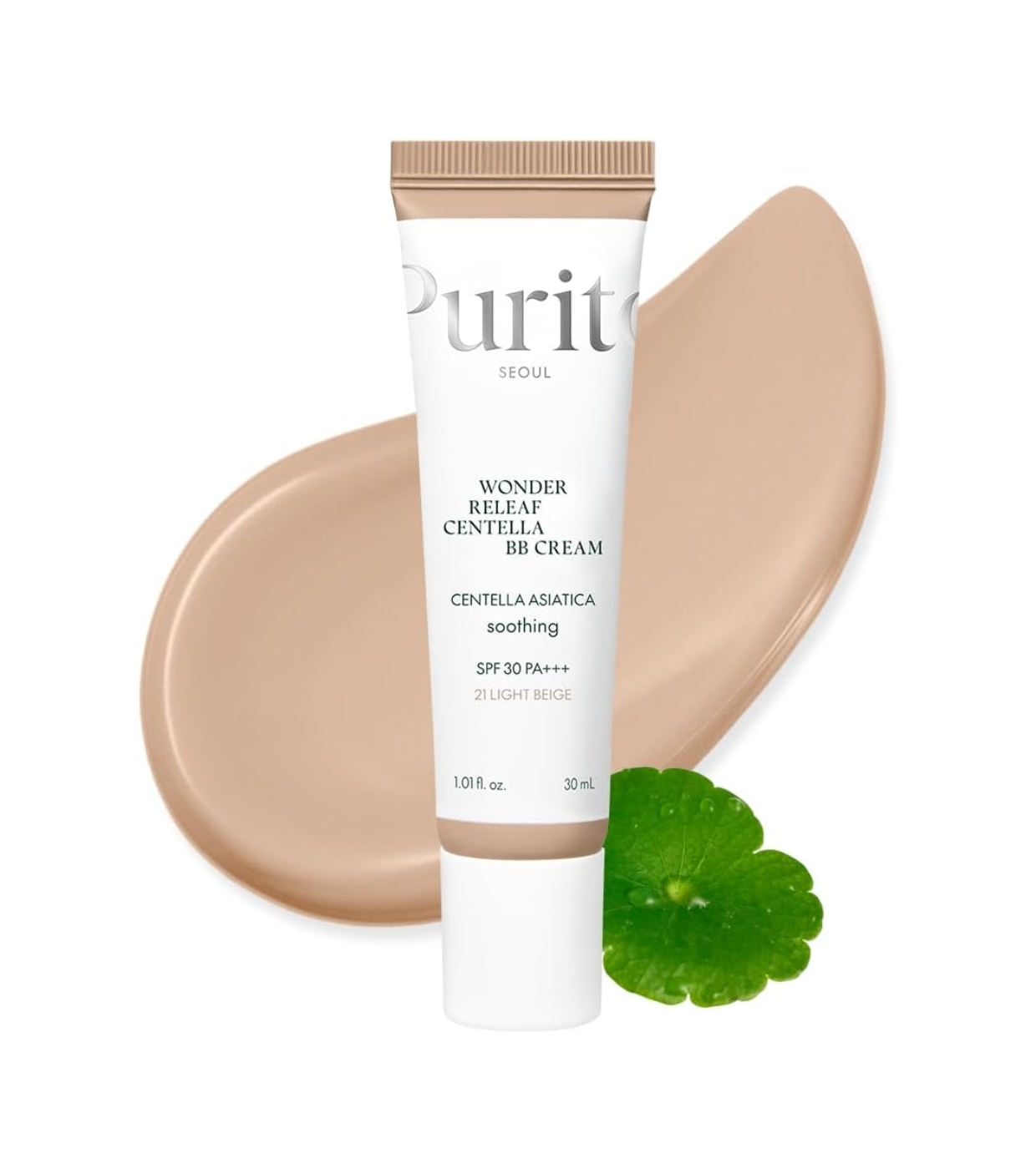 Uniformize o tom da sua pele, esconda imperfeições e proteja-a do sol com este BB Cream Wonder Releaf Centella SPF30 da Purito .