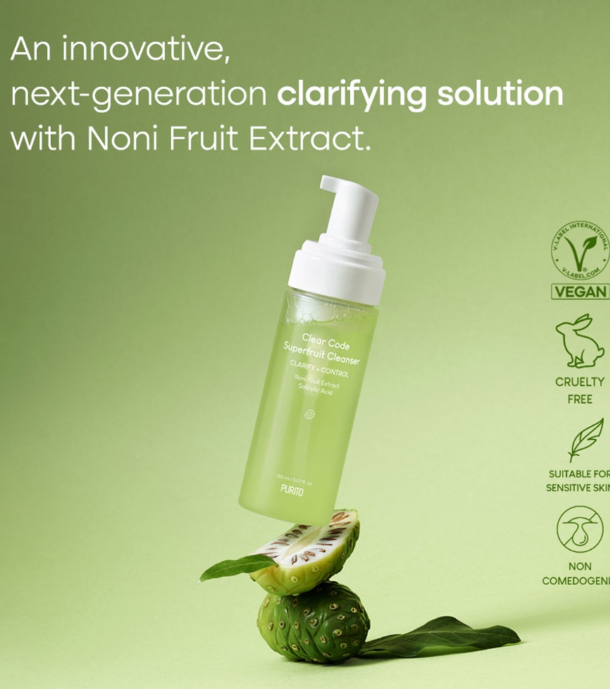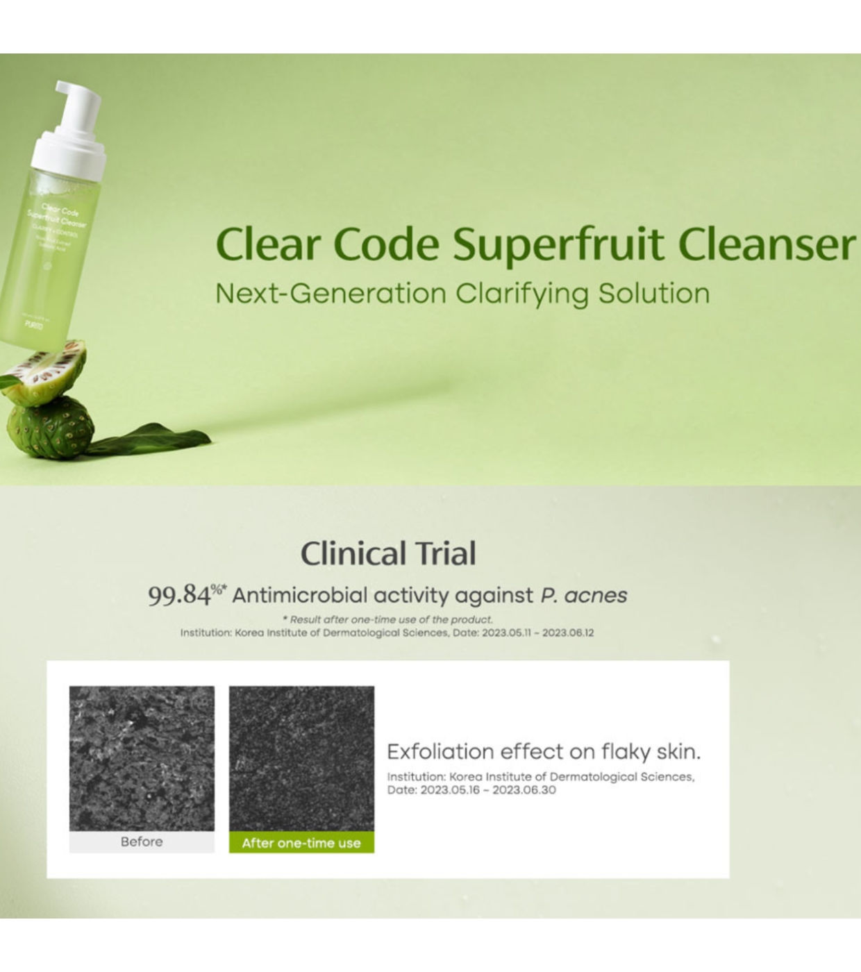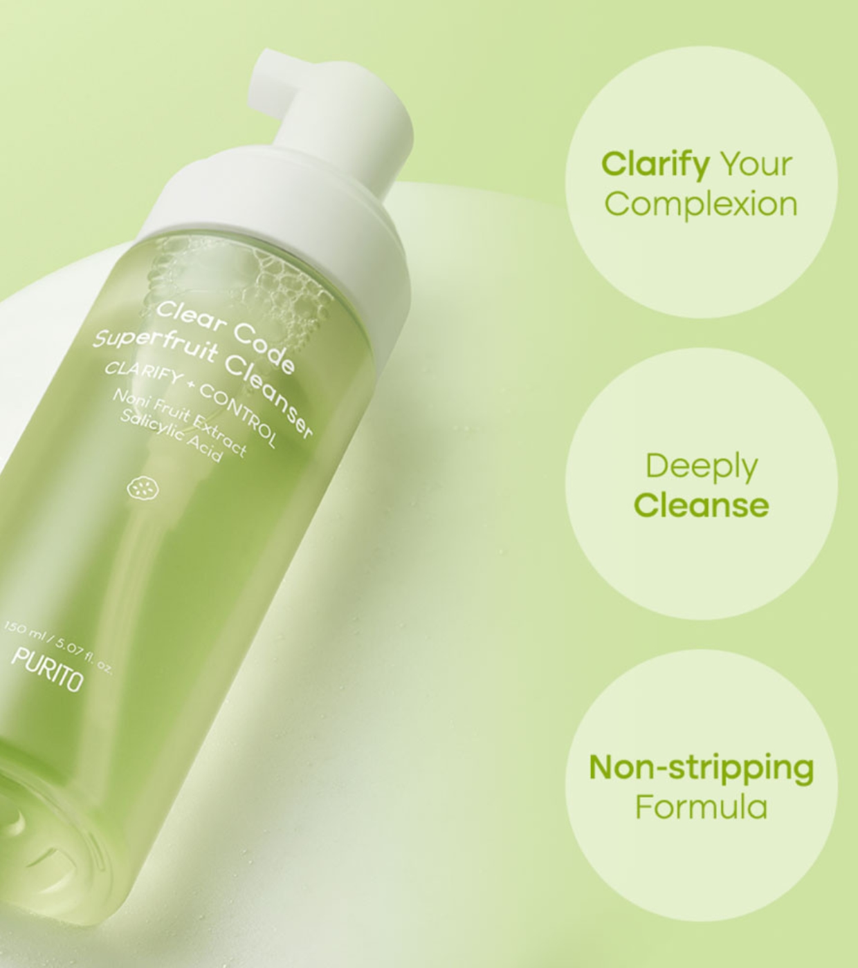 O Purito Clear Code Superfruit Cleanser é um limpador facial suave, porém eficaz, especialmente formulado para peles sensíveis e com tendência a acne.