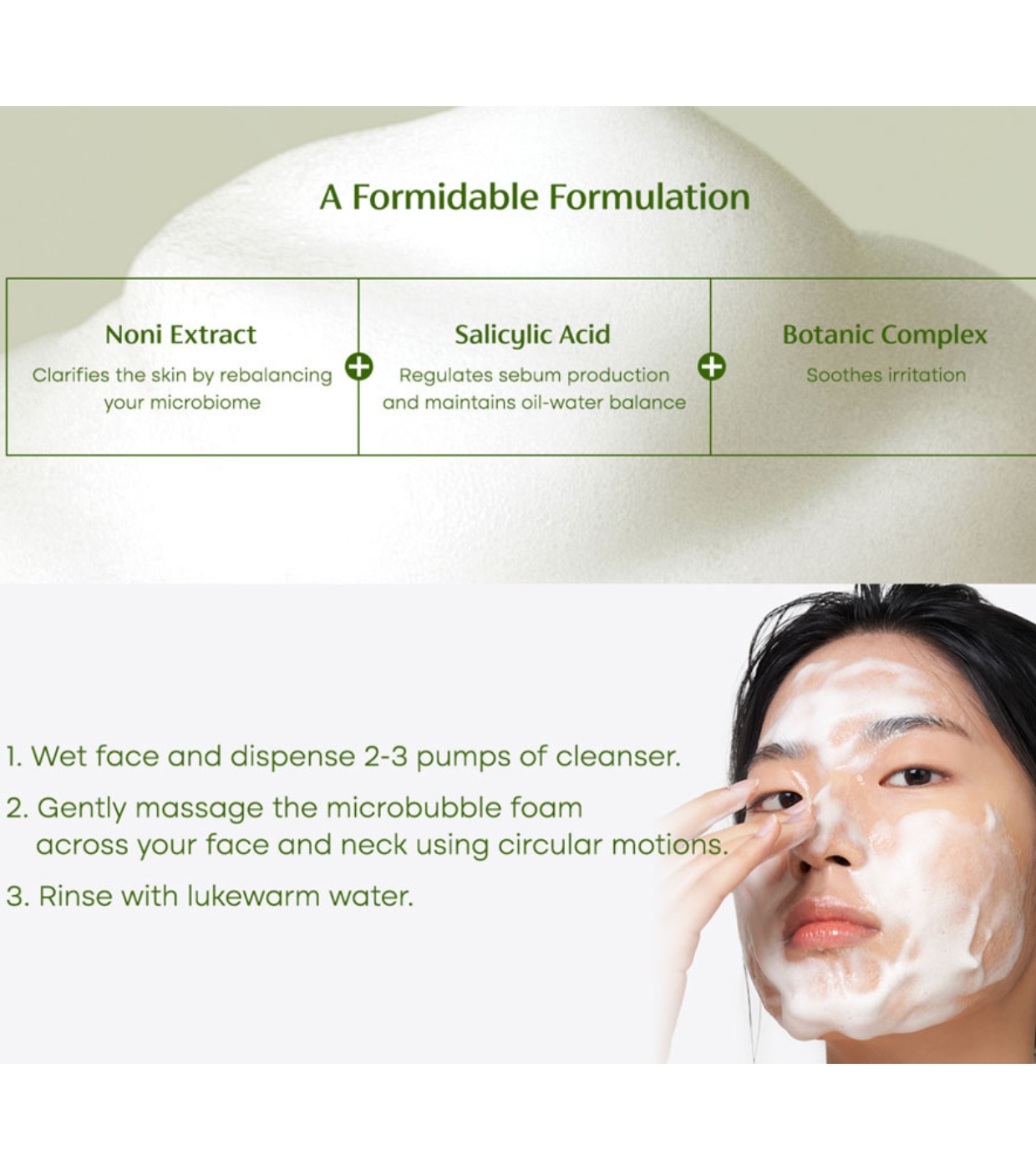 Sua fórmula com ácido salicílico limpa profundamente os poros, removendo impurezas e células mortas, enquanto o extrato de noni regula o excesso de sebo e ajuda a reequilibrar o microbioma da pele para mantê-la limpa e saudável.