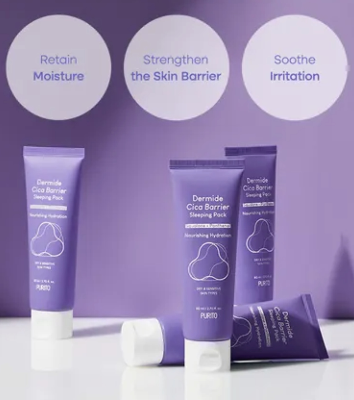 Dermide Cica Barrier A máscara noturna Dermide Cica Barrier é o tratamento ideal para fortalecer a barreira da pele e evitar a perda de hidratação enquanto você dorme.
