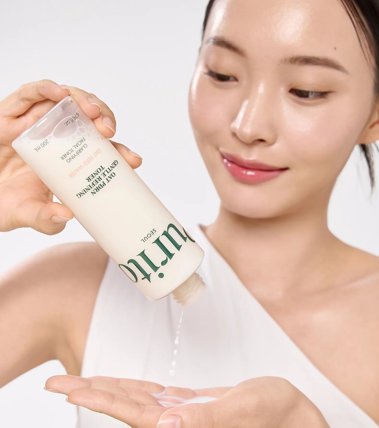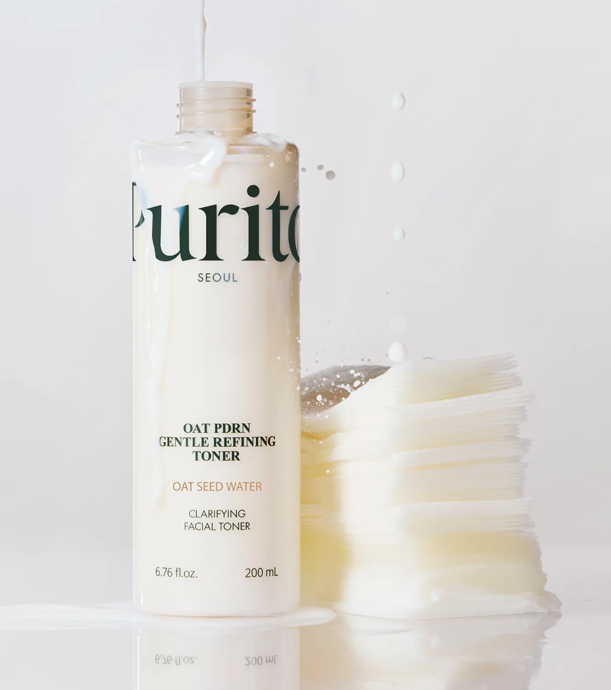 O tônico facial Oat PDRN Gentle da Purito tem uma textura "leitosa" e foi desenvolvido para suavizar a pele, melhorar a textura e acalmar sem recorrer a esfoliantes agressivos.