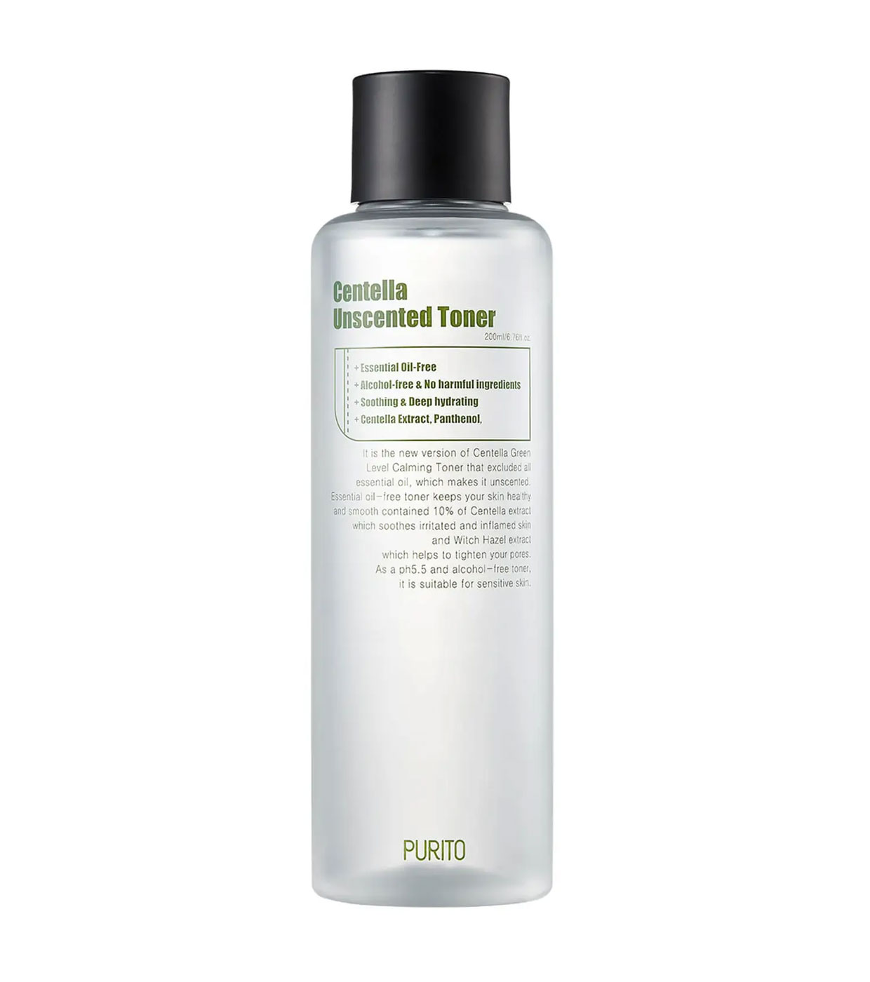 Este toner é uma versão sem óleo essencial do toner Centella Green Level Calming da marca.