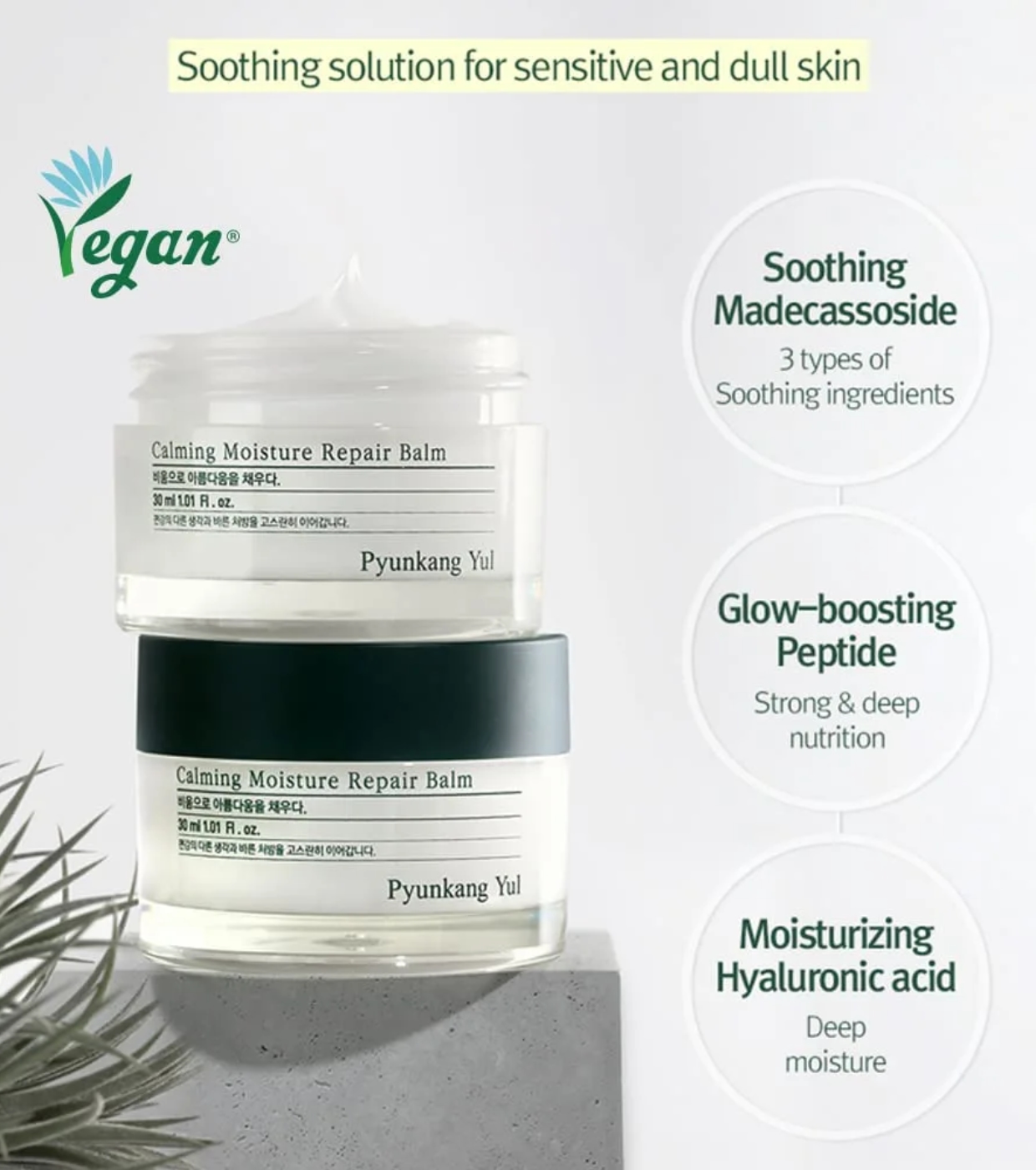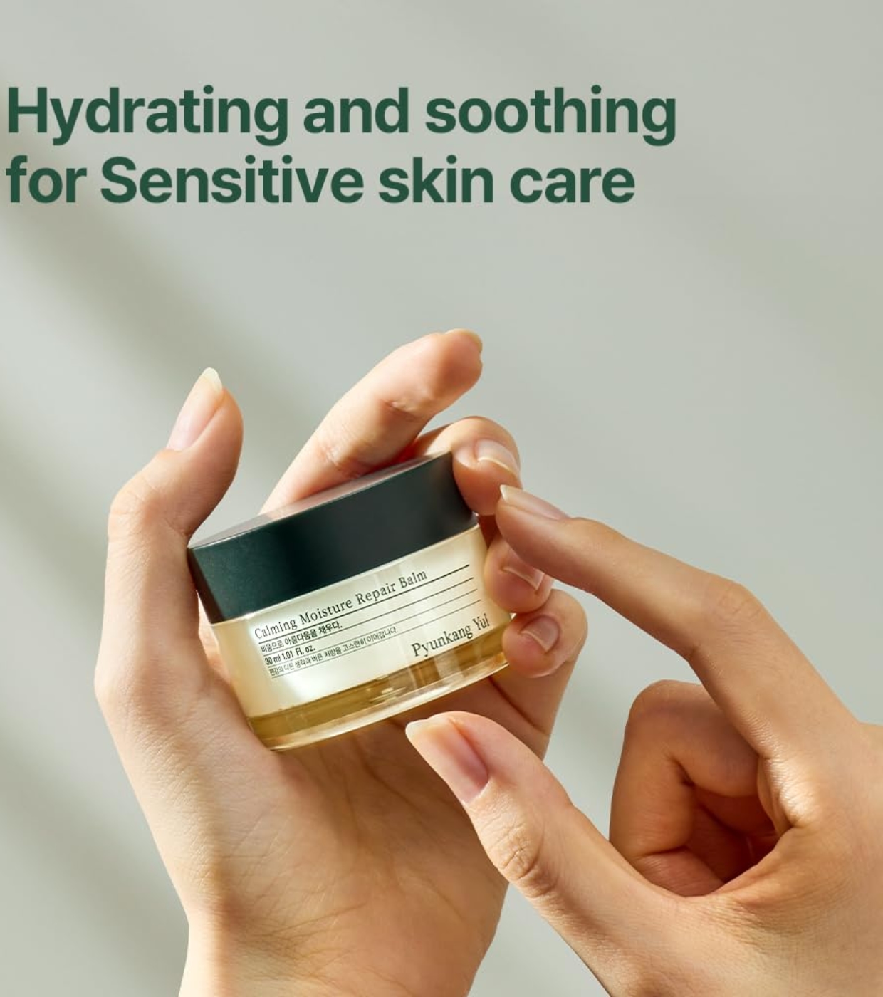 Pyunkang Yul Calming Moisture Repair Balm é um bálsamo facial calmante, regenerador e hidratante, especialmente formulado para peles sensíveis, com acne, vermelhidão ou irritação.
