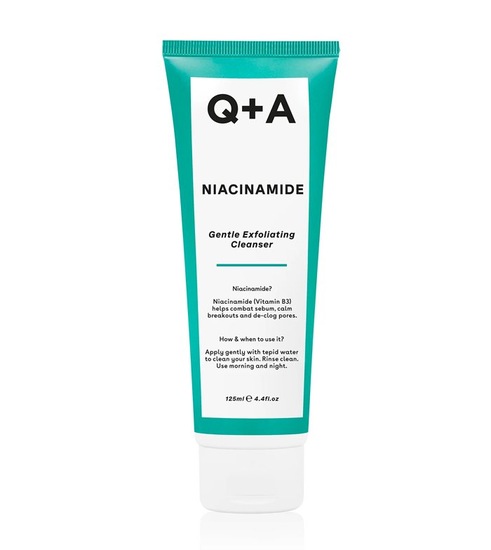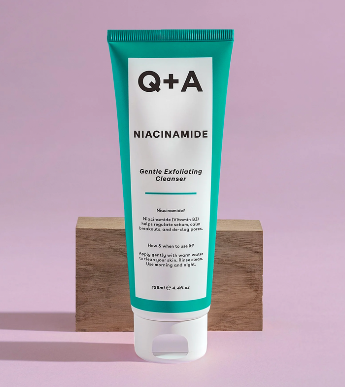 Limpe a pele enquanto esfolia levemente com Q+A Skincare Niacinamide Cleanser .