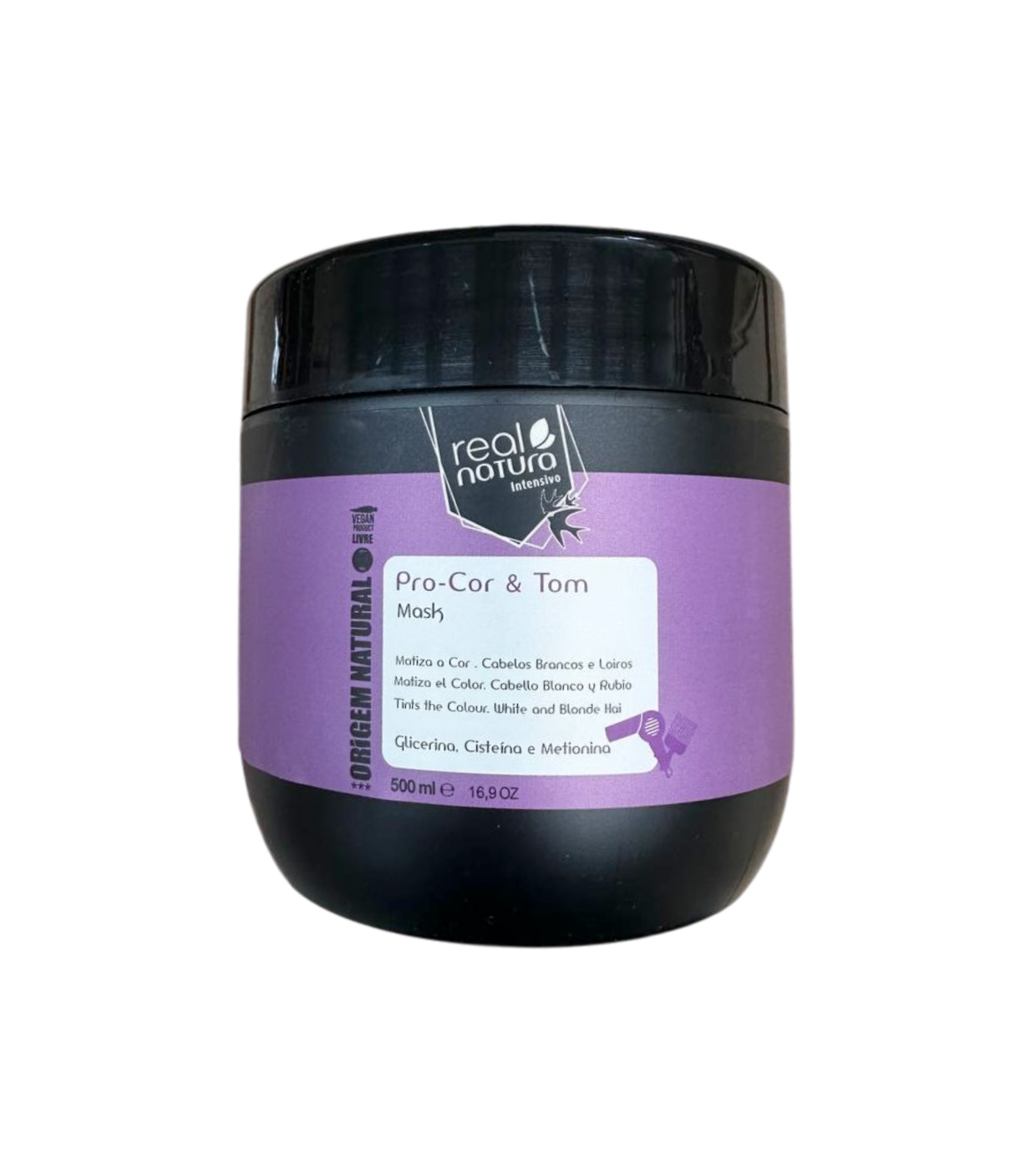 A máscara Real Natura Pro-Cor & Tom foi desenvolvida para neutralizar e eliminar com eficácia o tom amarelado dos cabelos.