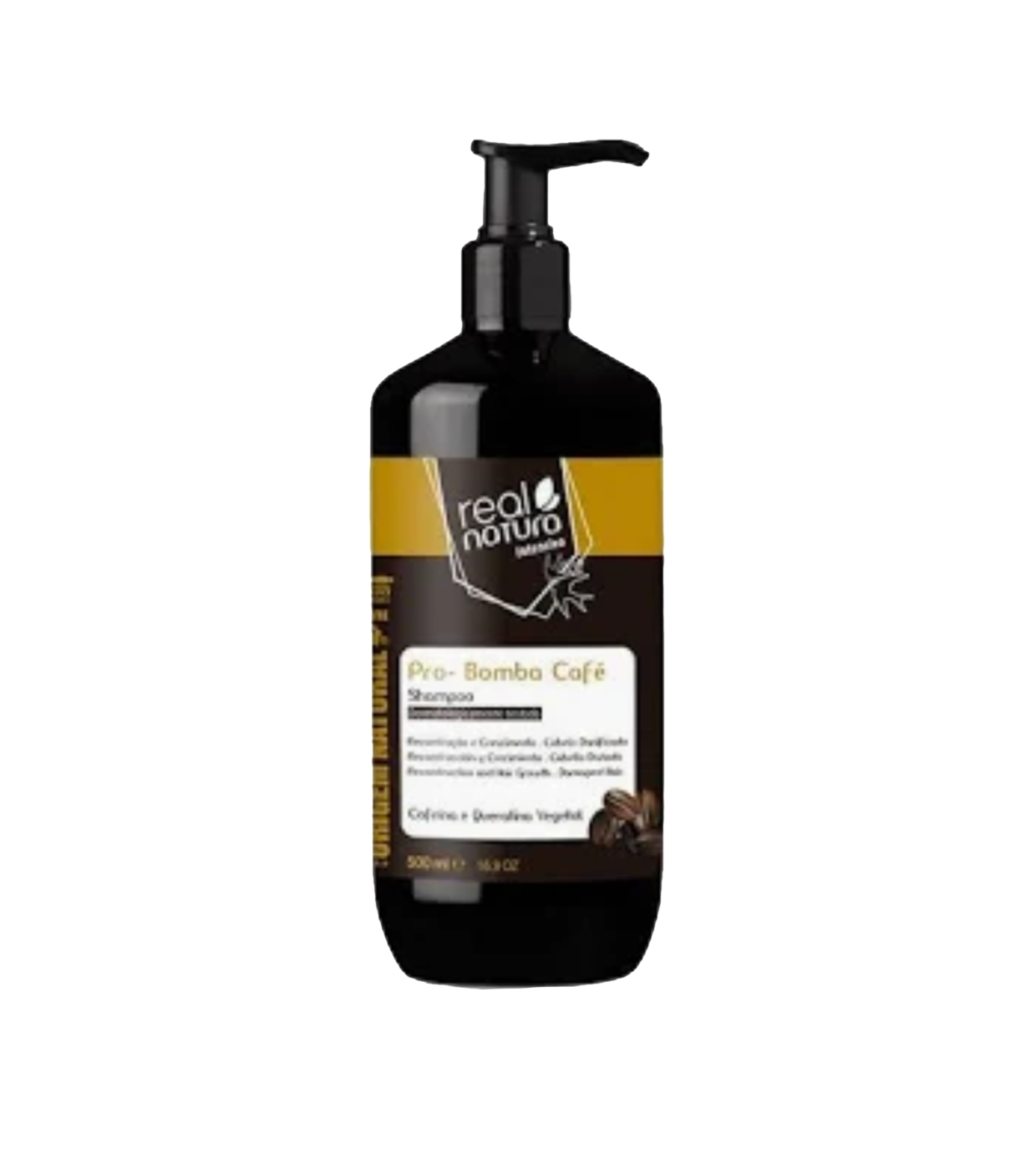 Shampoo Pró-reparador Coffee Bomb para cabelos finos e fracos da Real Natura.