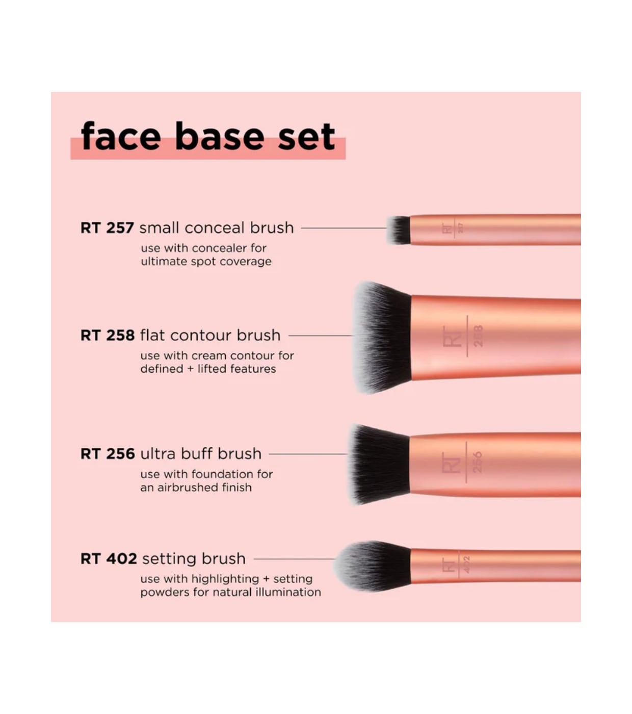 Real Techniques Face Base Set reúne 4 pincéis de maquiagem para ajudar você a conseguir a base perfeita.