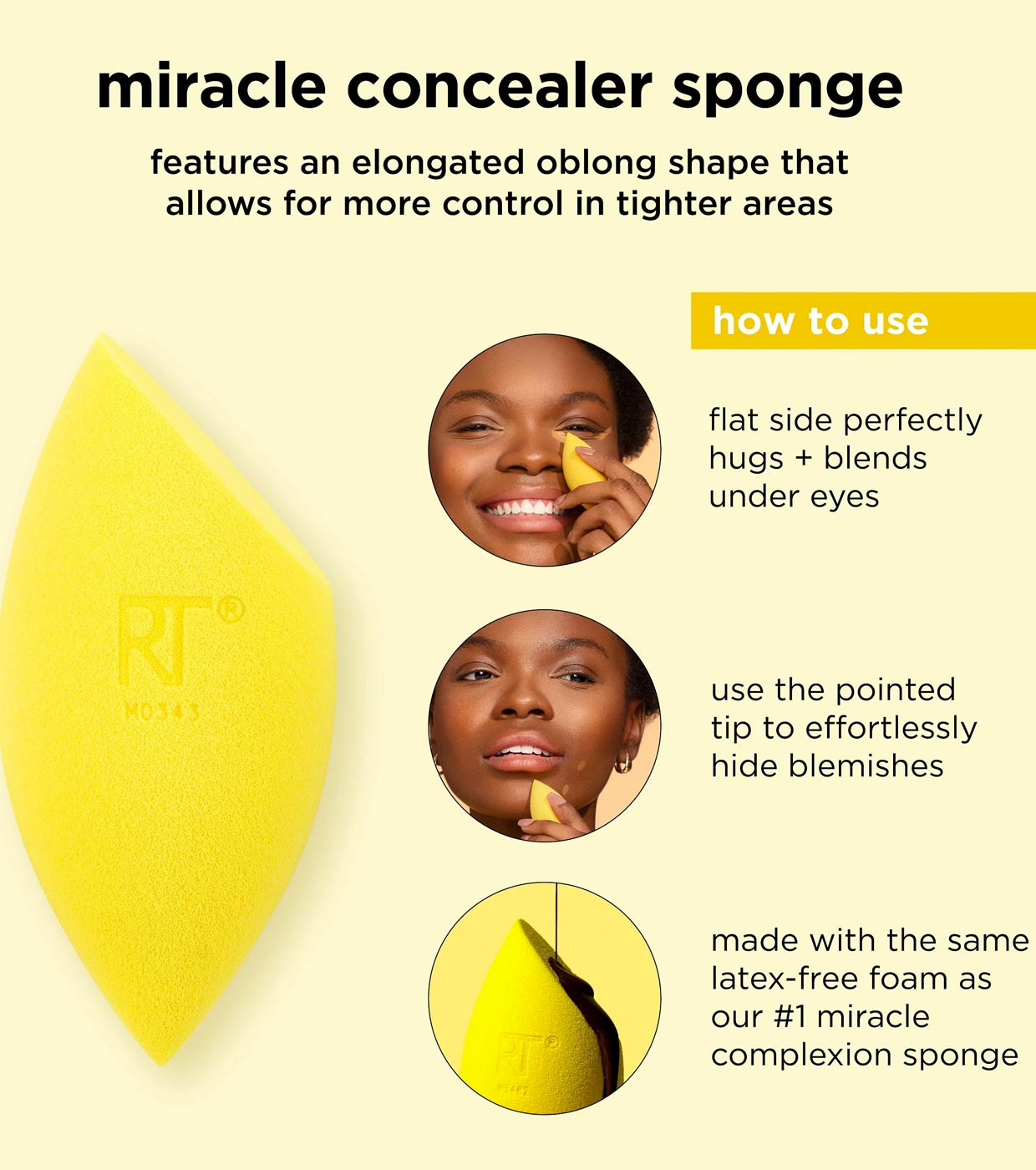 A esponja corretiva Real Techniques Miracle Concealer Sponge ajuda a misturar e ocultar para iluminar olheiras ou cobrir imperfeições.