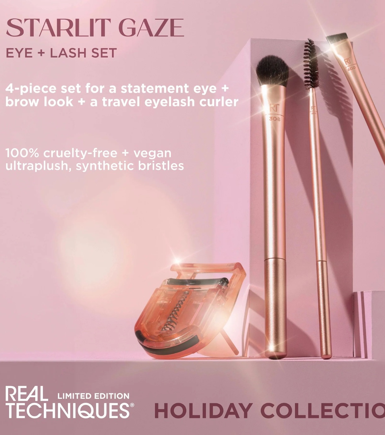 Explore o conjunto de olhos e cílios Holidays 2024 Starlit Gaze da Real Techniques , um conjunto que inclui tudo que você precisa para obter um acabamento profissional em seus olhos e sobrancelhas.