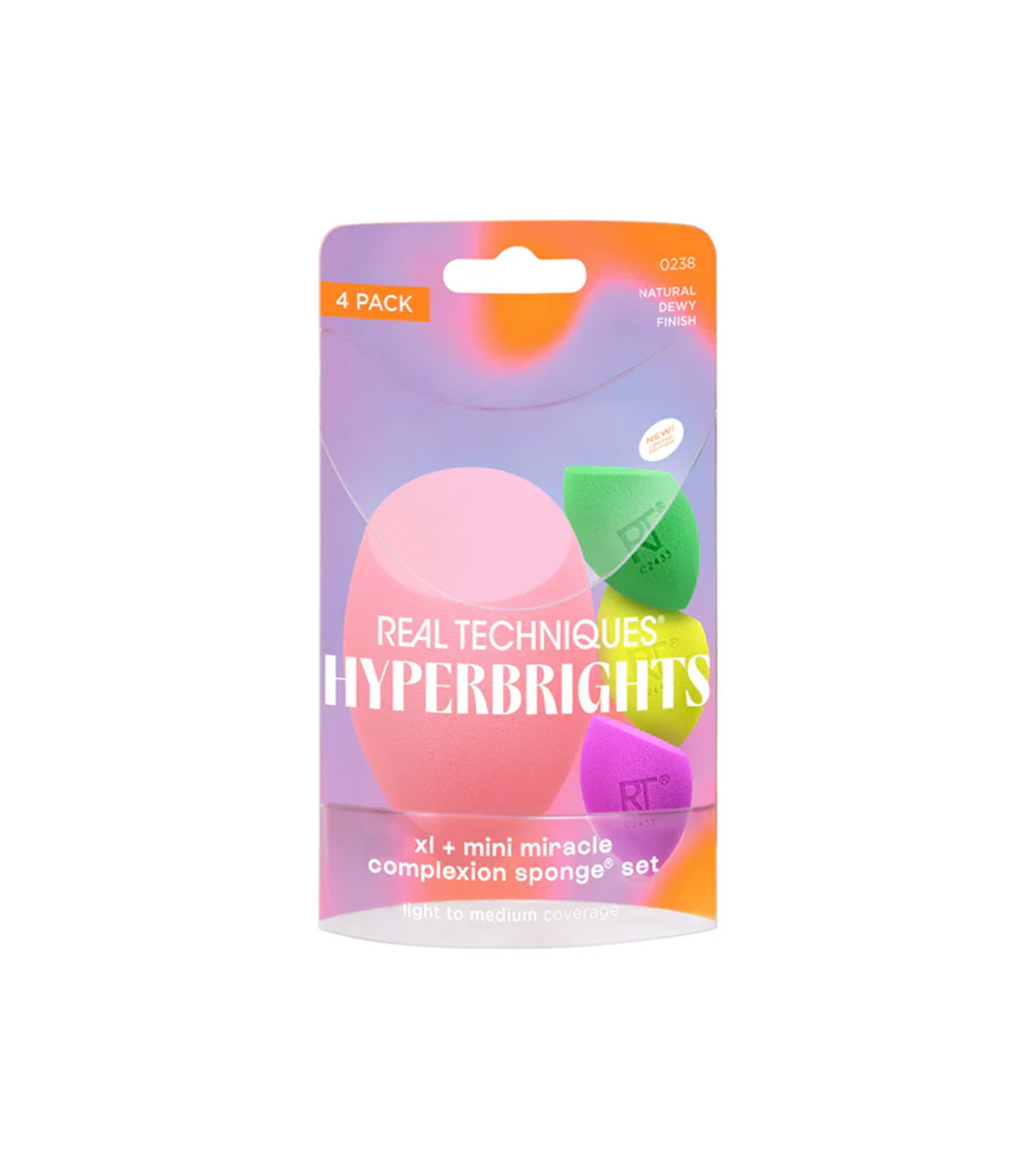 O conjunto de esponja Real Techniques Hyperbrights XL + Mini Miracle Complexion cobre todas as suas necessidades de mistura, da base ao corretivo, para uma base uniforme.