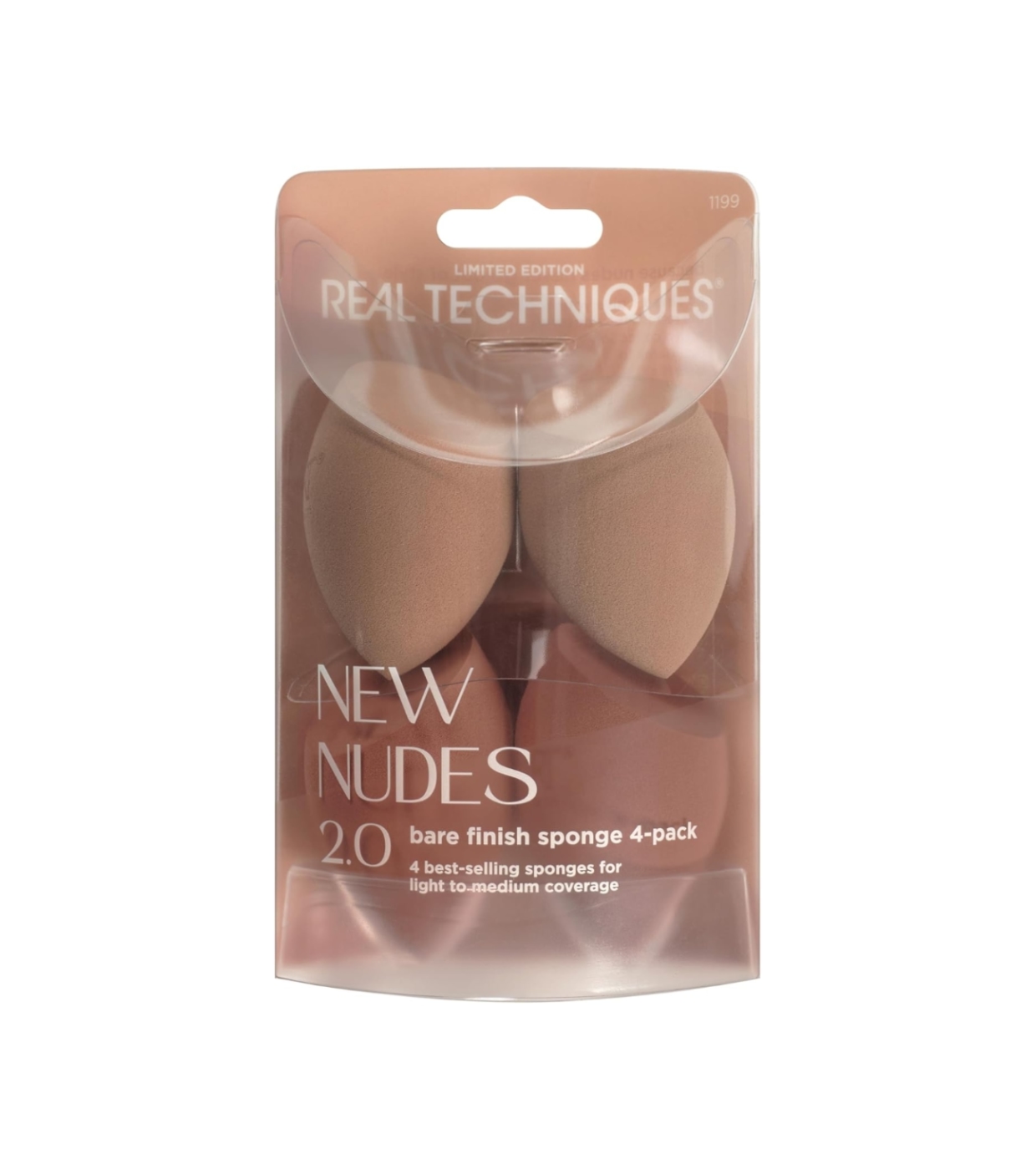 Este conjunto de 4 esponjas Bare finish da Real Techniques foi desenvolvido para aplicar base e obter um acabamento de pele natural, fresco e luminoso.