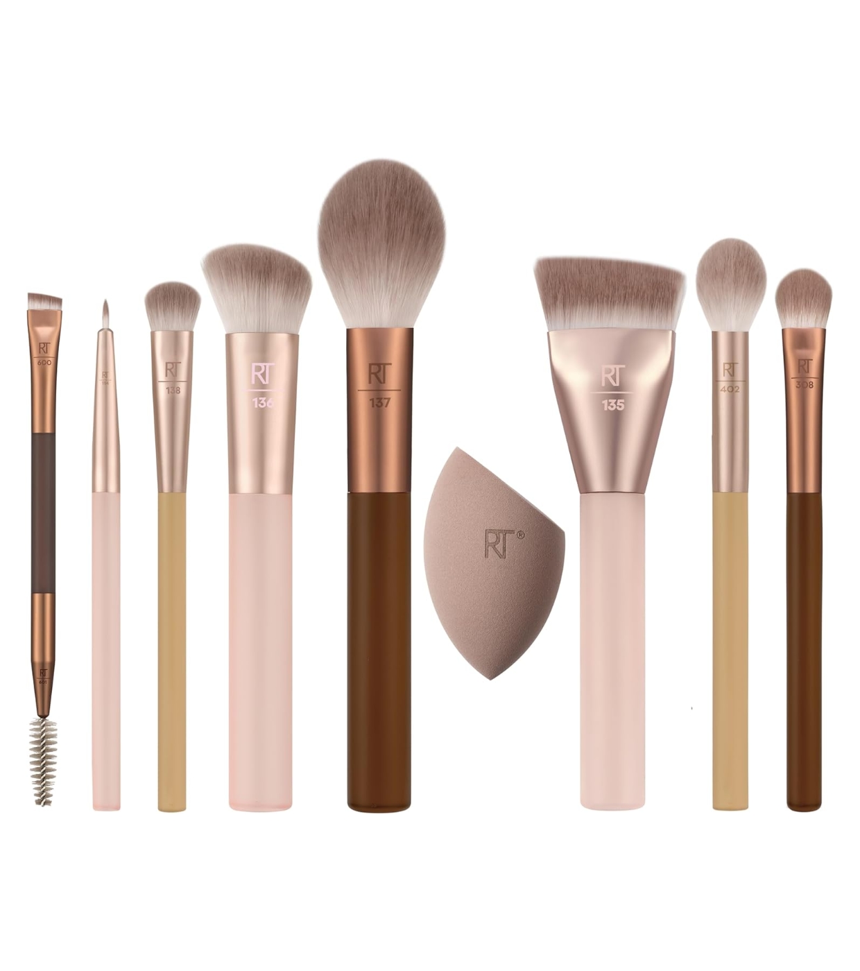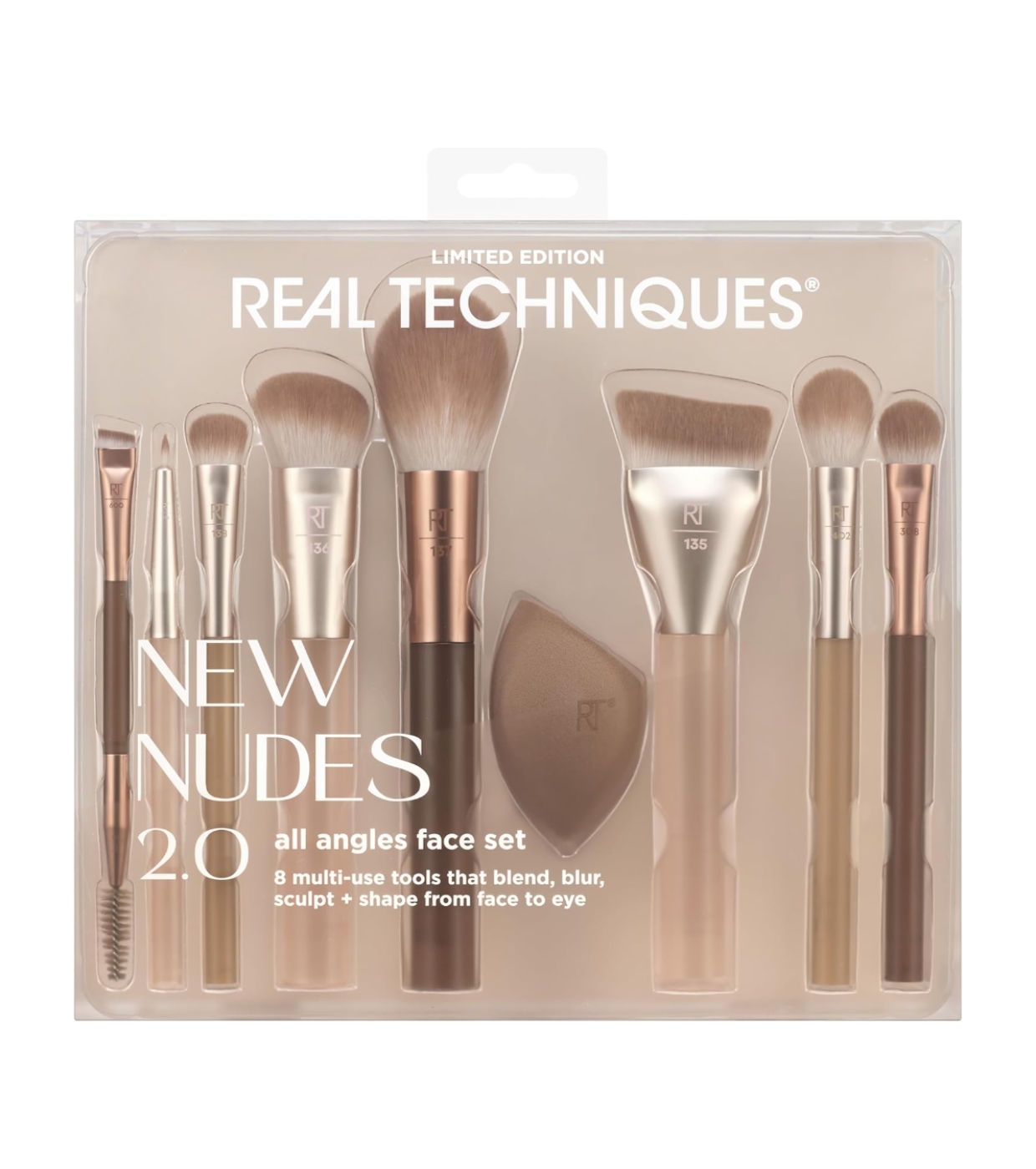 Este conjunto de pincéis de edição limitada All Angles da Real Techniques inclui pincéis multifuncionais e uma esponja de maquiagem projetados para esfumar, esculpir, suavizar e definir o rosto e os olhos, proporcionando um acabamento impecável e natural.