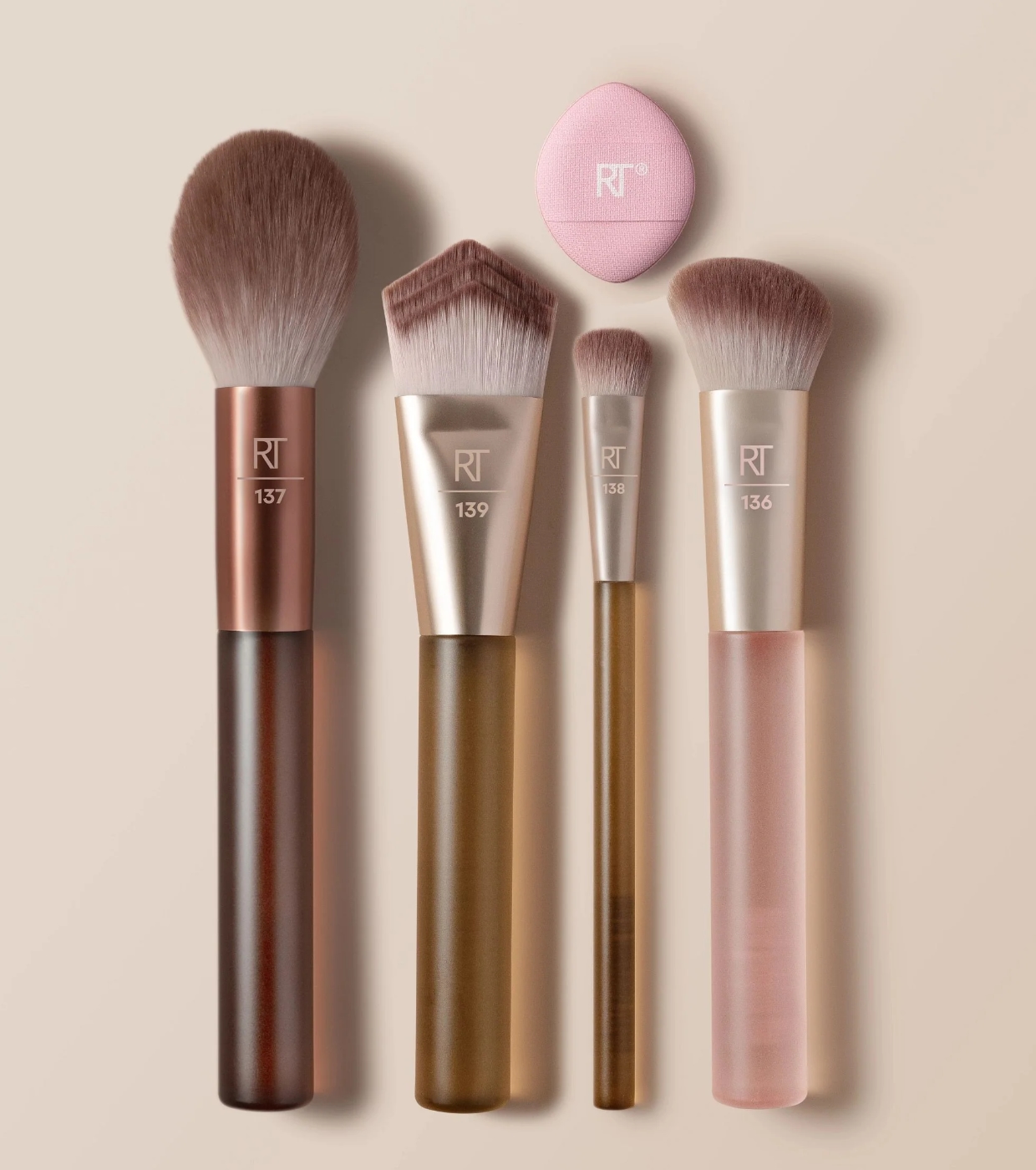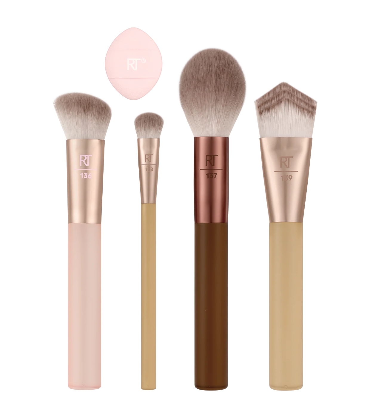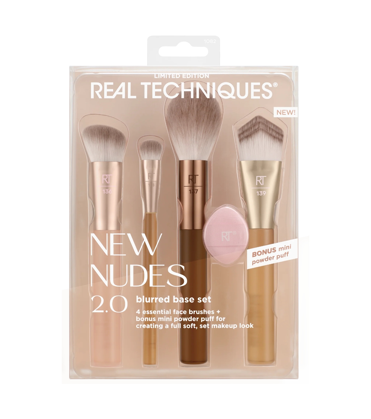 O New Nudes 2.0 Diffused Base Set da Real Techniques reúne 4 pincéis essenciais para o rosto e uma mini esponja de pó para criar uma maquiagem completa, definida e com aparência profissional.