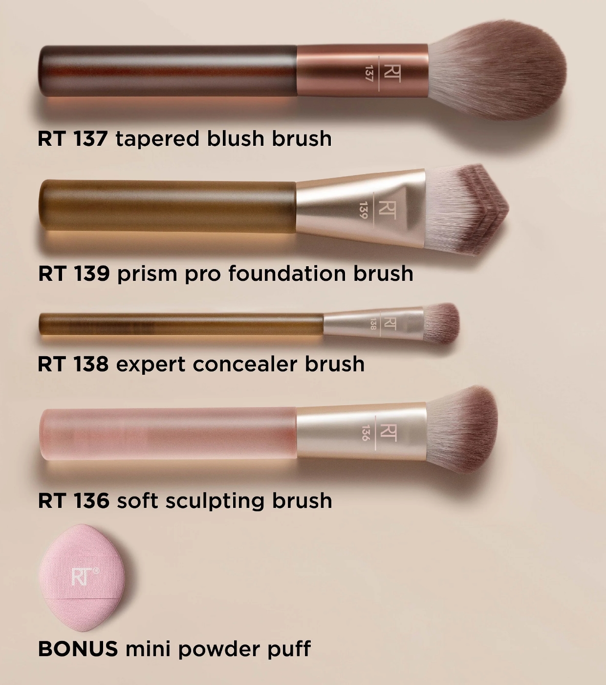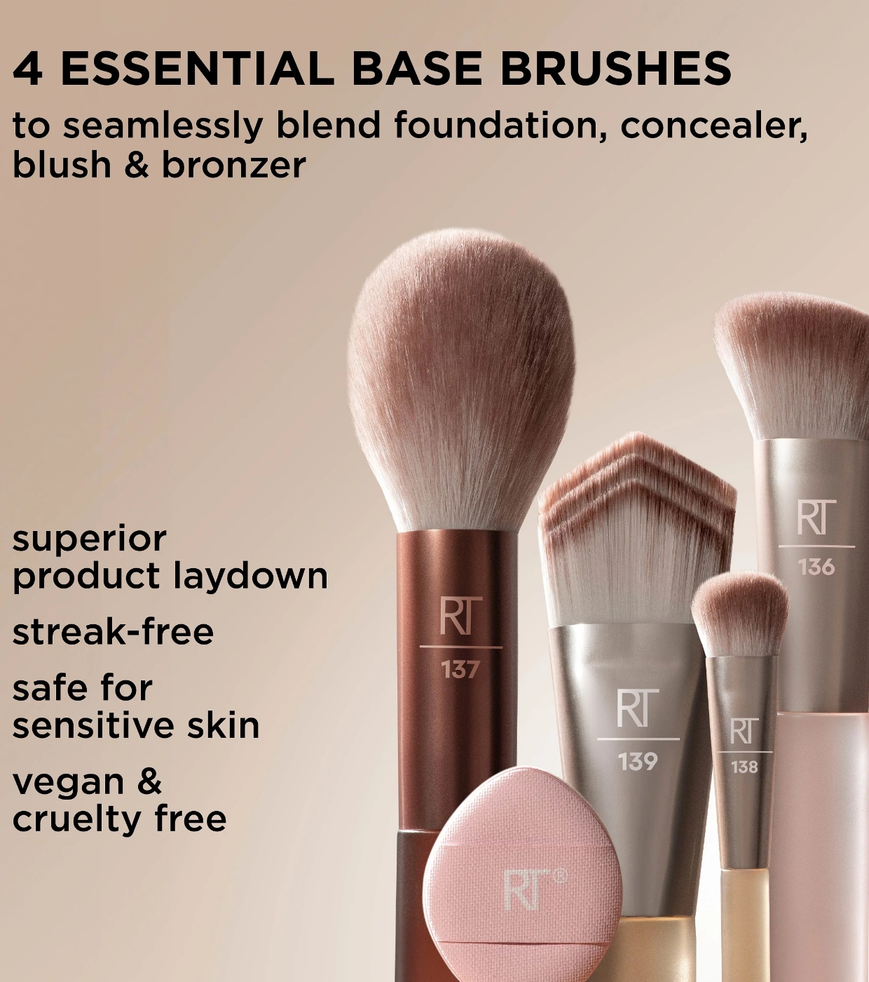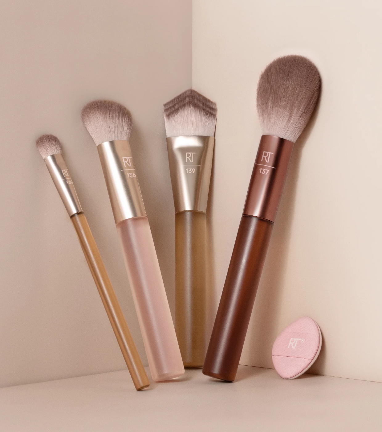 O New Nudes 2.0 Diffused Base Set da Real Techniques reúne 4 pincéis essenciais para o rosto e uma mini esponja de pó para criar uma maquiagem completa, definida e com aparência profissional.