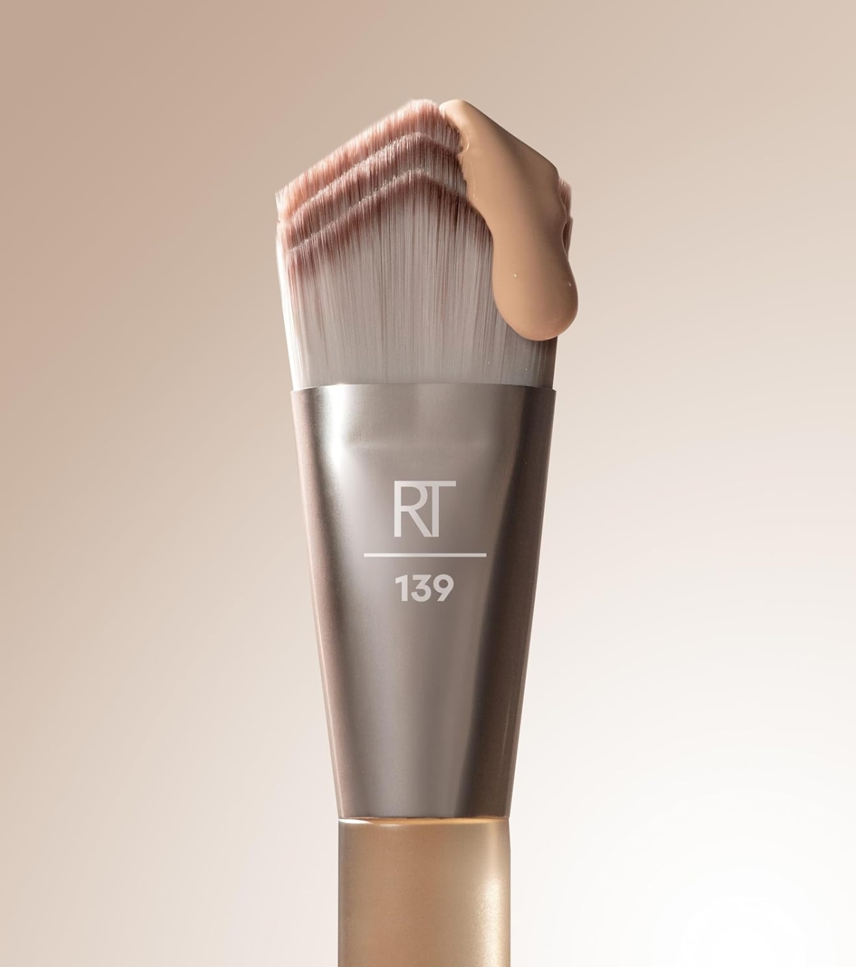 Incorpora tecnologia de cerdas de três níveis, que permite que a base seja aplicada de maneira uniforme e controlada, alcançando um efeito aerógrafo natural, com cobertura modulável e sem marcas ou riscos.