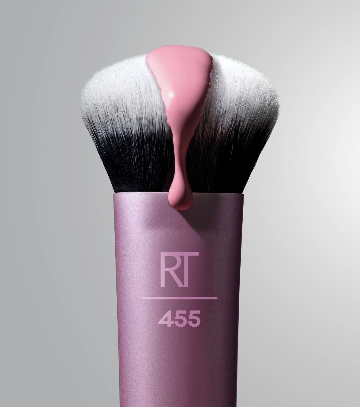 É perfeito para uso com blush, iluminador ou produtos de contorno, tanto em texturas líquidas quanto em creme.
