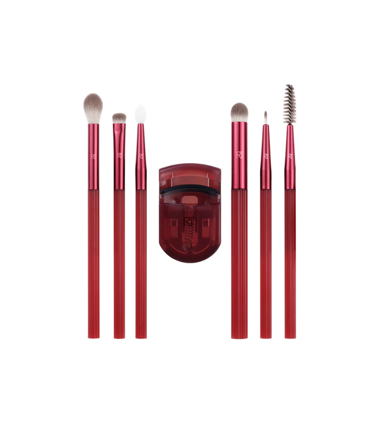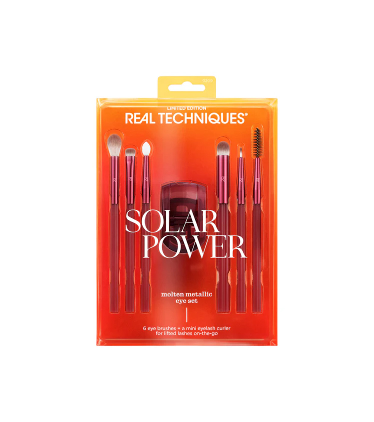 O conjunto de olhos metálicos fundidos com energia solar da Real Techniques oferece 6 pincéis de olhos pigmentados e um mini modelador de cílios para levantar seus cílios em qualquer lugar.