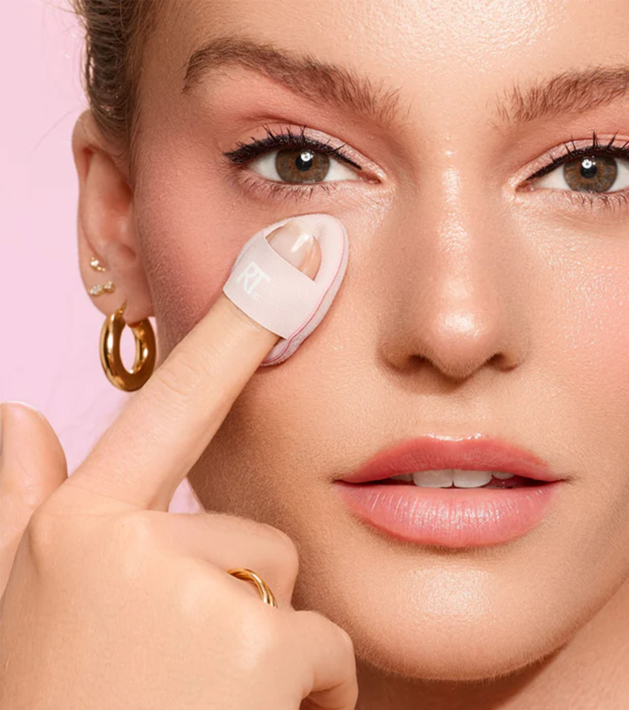 Essas pequenas esponjas de maquiagem deslizam sobre o dedo e fixam-se com a faixa de controle para uma aplicação fácil e precisa.