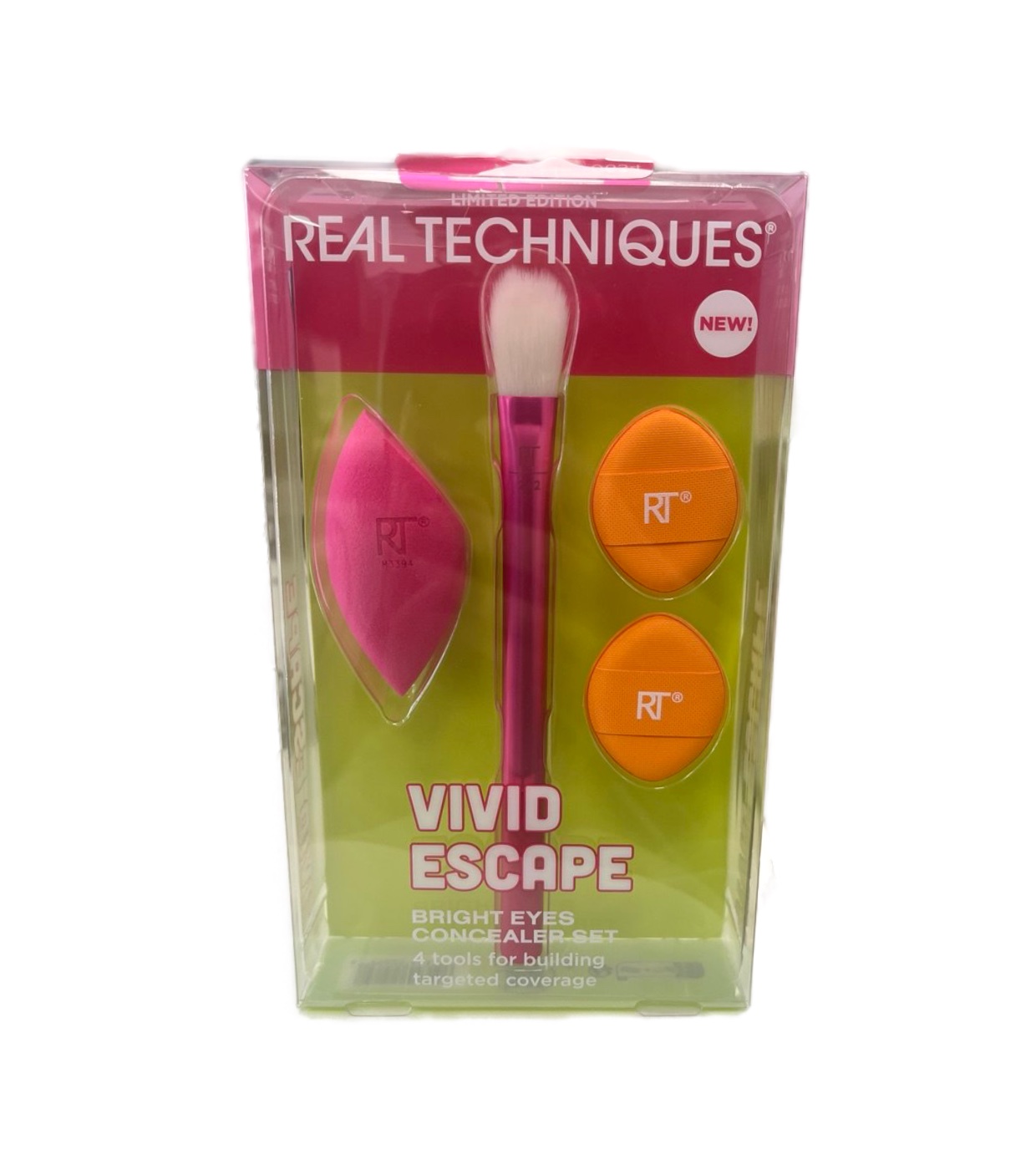 Este conjunto de pincel + esponja + 2 esponjas puff Vivid Escape da Real Techniques é o aliado perfeito para um look radiante.