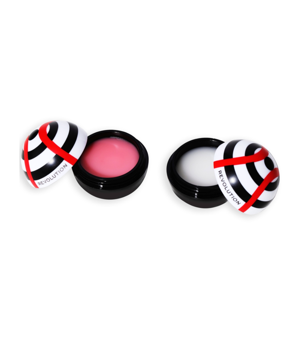 Explore a magia do Wonderland com o conjunto de protetor labial inspirado em Tweedledum e Tweedledee, parte da coleção Revolution x Alice in Wonderland.
